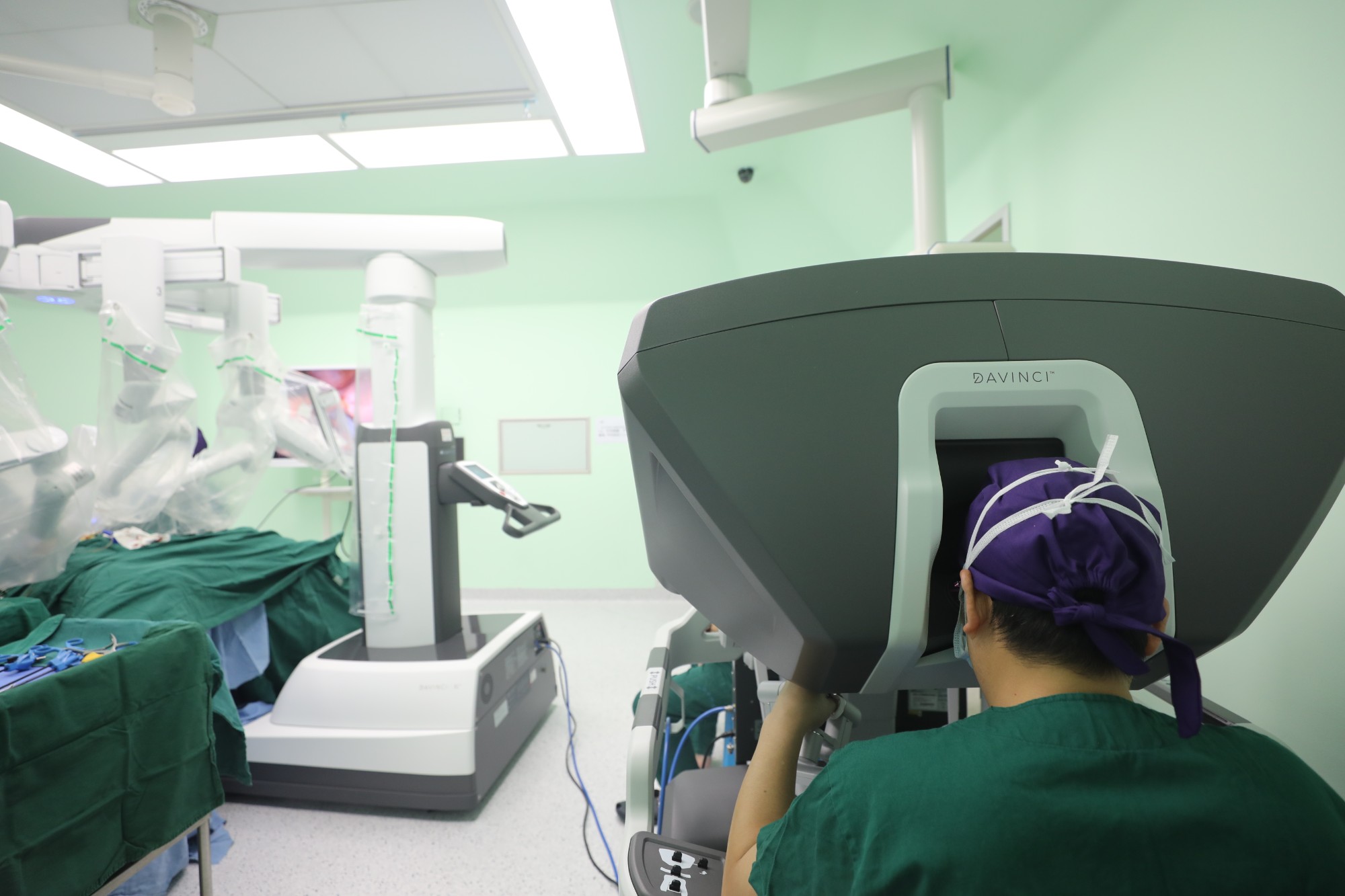 南溪山医院副院长柳宏林正在操作达芬奇手术机器人进行手术1