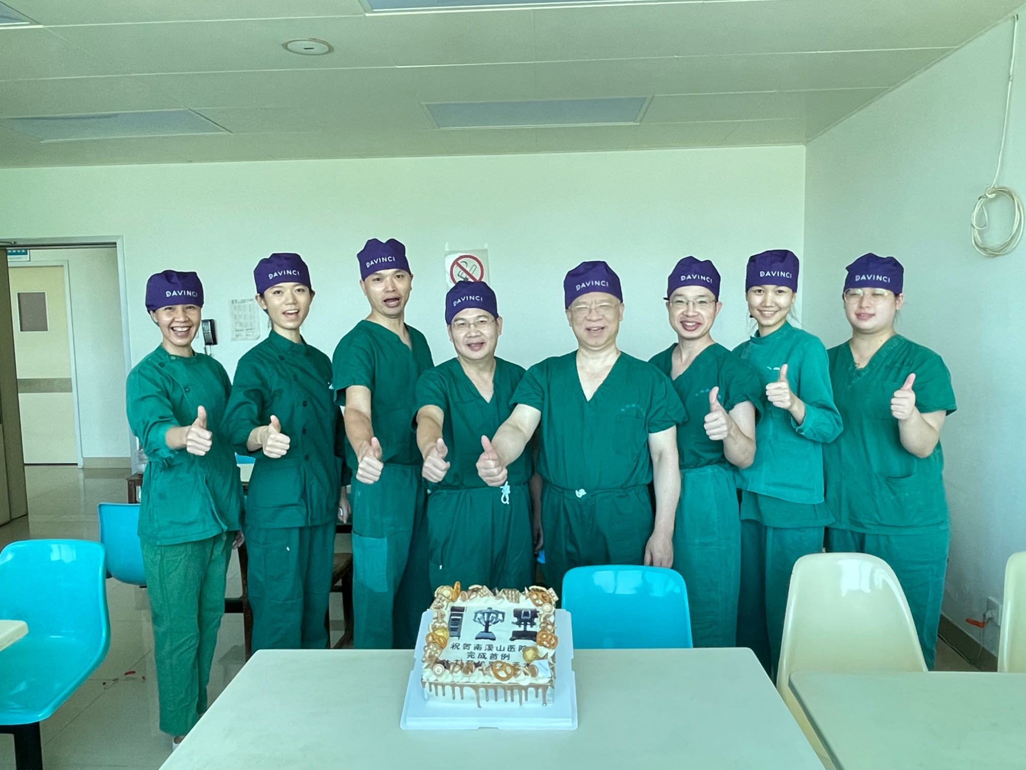 手术团队共同庆祝达芬奇手术机器人成功完成首例手术