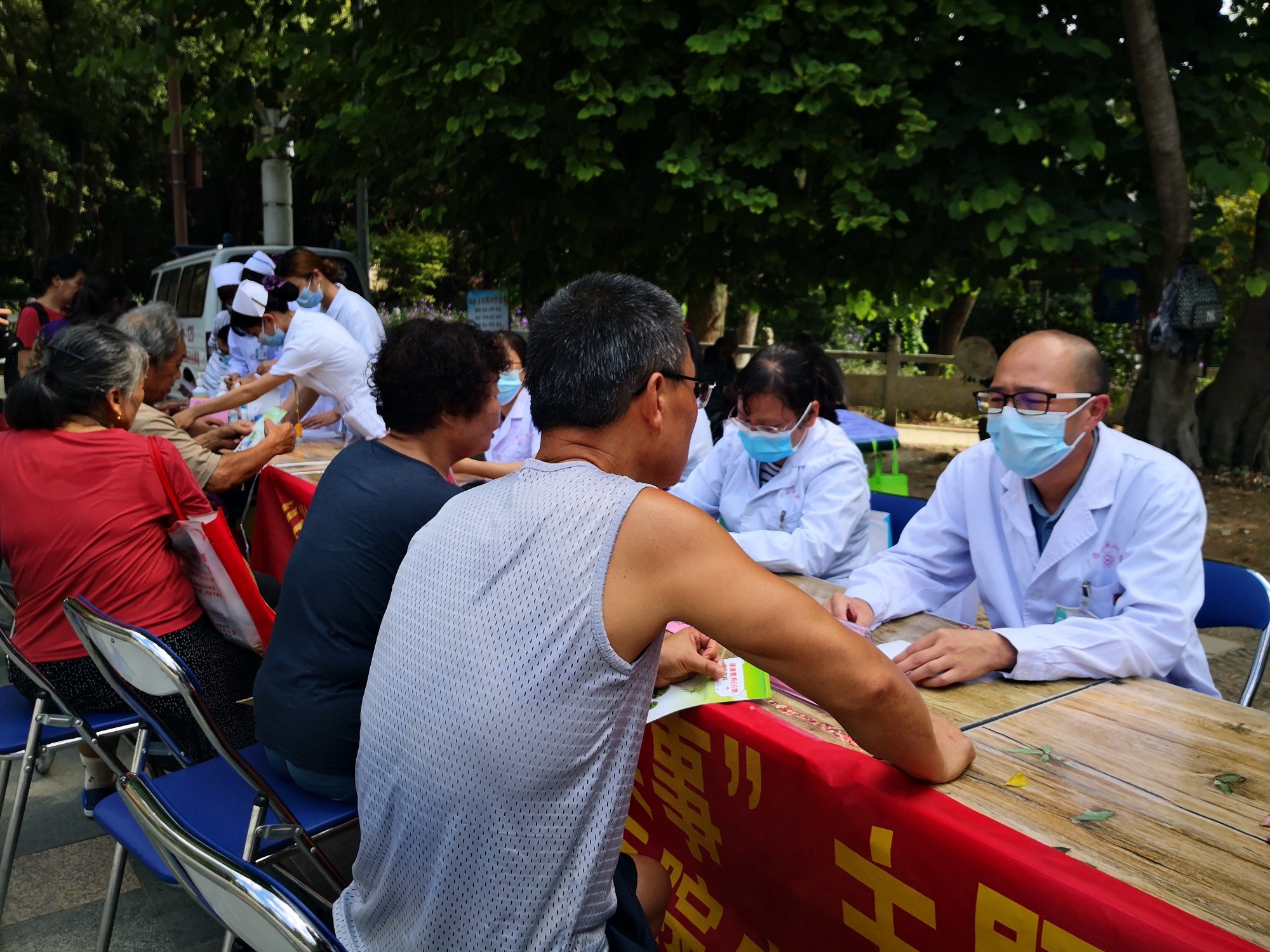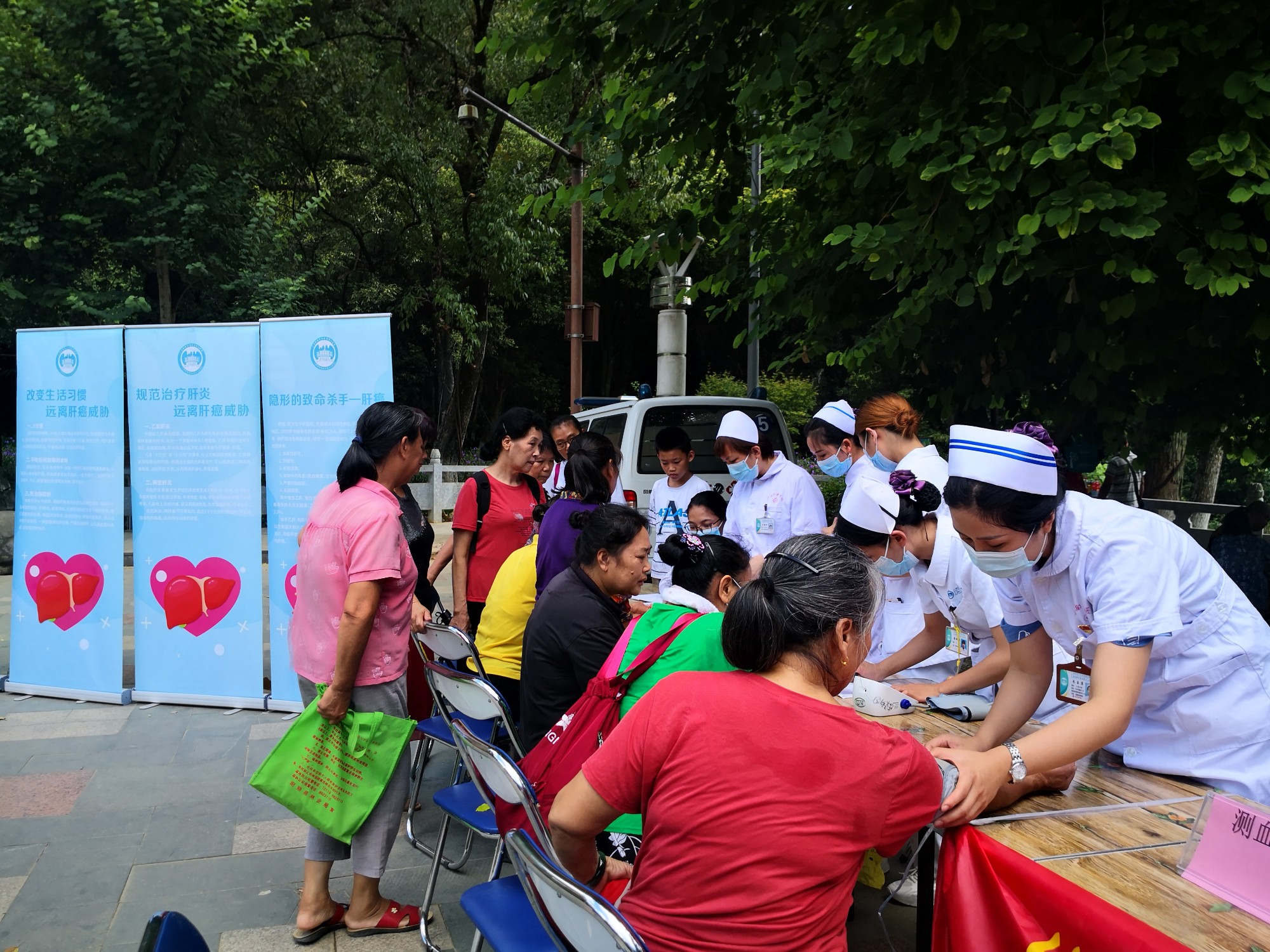 当天上午,医务人员们在人民公园广场上就地展开义诊活动,针对病毒性肝炎(乙肝,丙肝)、酒精性肝炎、脂肪肝、肝硬化、肝衰竭、肝癌、新冠肺炎及常见传染病为群众答疑解惑。活动还免费为群众筛查丙肝,测血压、血糖。为了让更多群众参与义诊活动,行政后勤第五党支部的同志们手拿宣传册,在公园各处向当地群众发放宣传册,介绍义诊内容。许多正在公园锻炼身体的群众闻讯赶来,向医护人员详细咨询。活动持续两个多小时,共测血糖、血压80余人次,问诊咨询100余人,发放宣传册130余份。