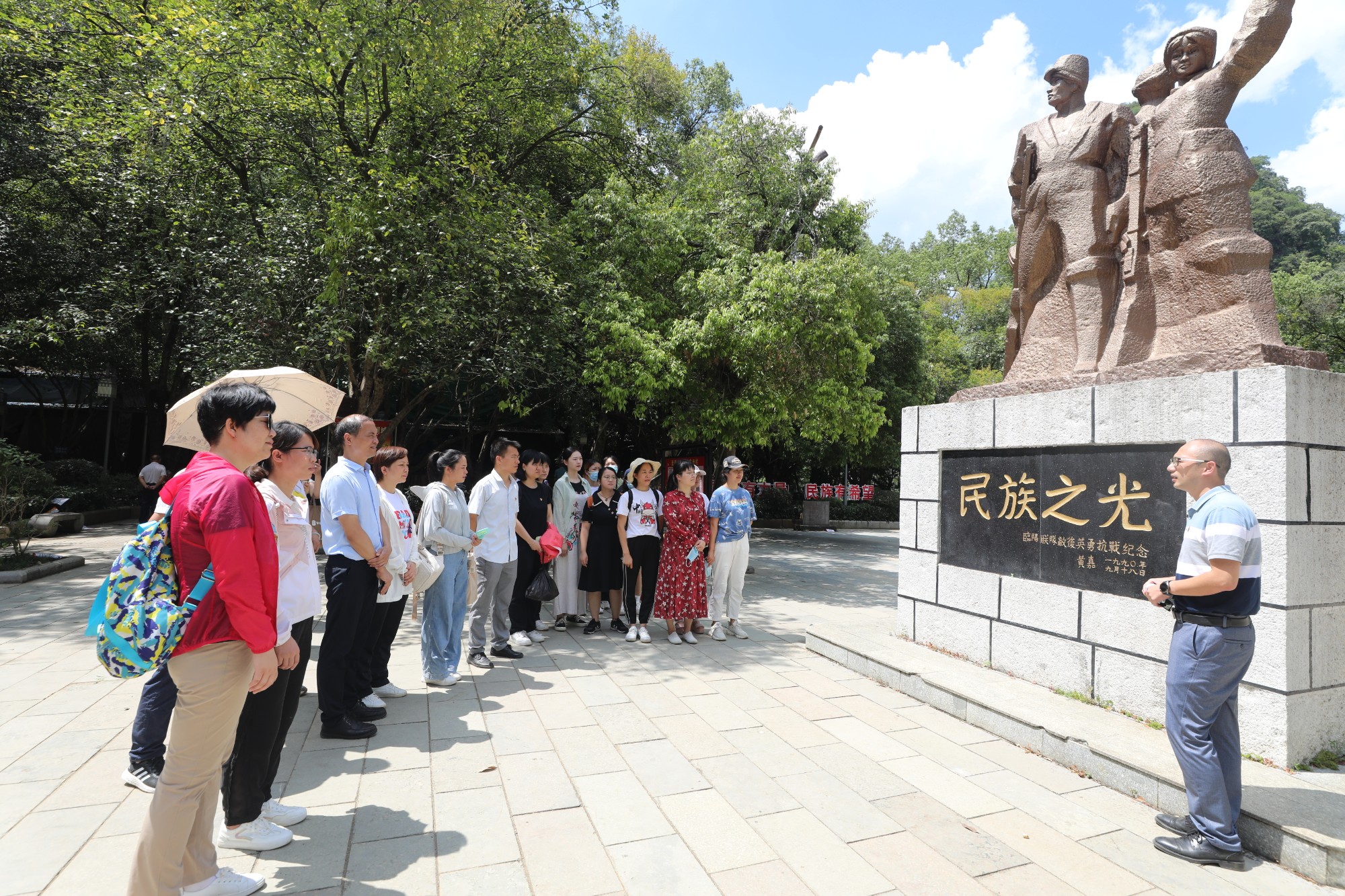 义诊活动结束后,参加活动的医务人员在阳朔县人民公园的革命烈士纪念碑园开展红色教育。内科第九党支部书记李庆辉向大家讲解了烈士纪念碑的由来以及临阳联队的历史,号召党员同志们要学习革命先辈们为国为民奉献一切的爱国精神。