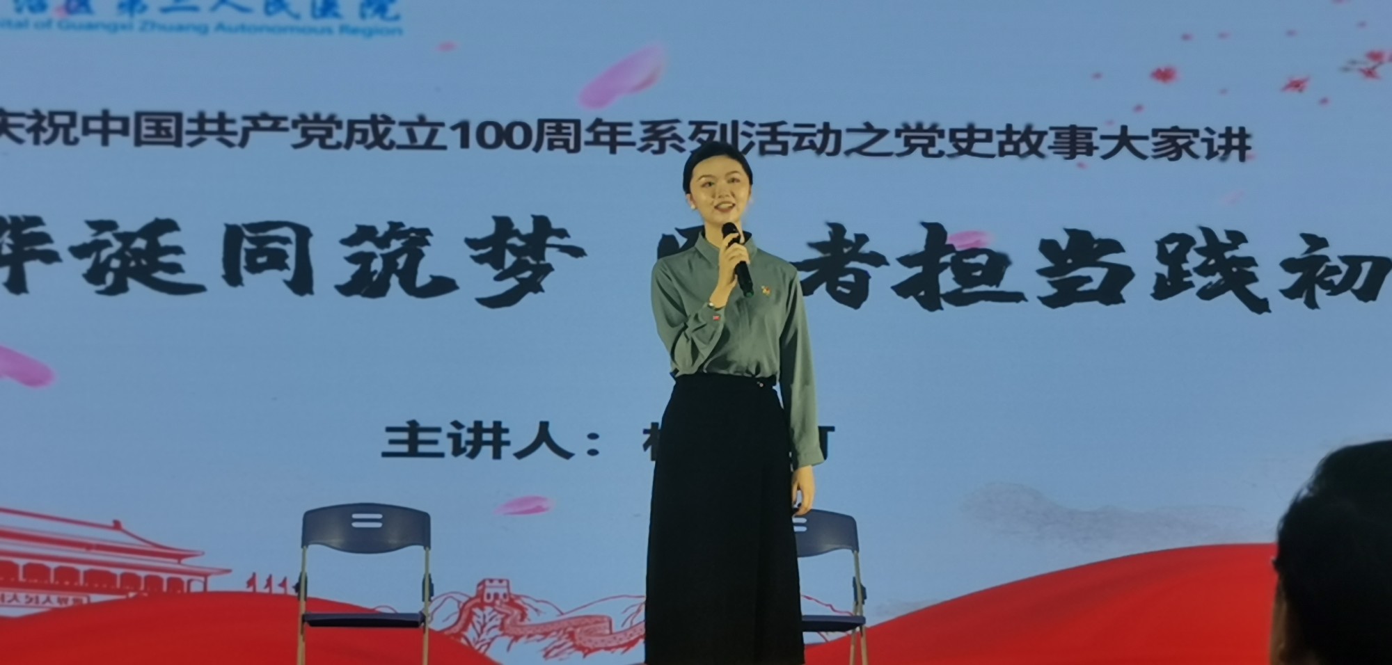 通过参加这次到南宁展演活动,不仅向自治区卫健委领导和兄弟单位同行展示南溪山医院党史学习教育的效果,也让更多的人了解南溪山医院的辉煌历史和不同时期共产党员的突出表现。南溪山医院参与这次展演活动的10多名年轻职工也感到受益匪浅,主讲人杨实可和护士长刘斐斐、俸雁、张健坤、张唐馨等演职人员纷纷表示:“将党史学习教育和主题读书活动有机结合起来,让自己深刻感受到了红色历史故事强大的凝聚力和艺术感染力。作为新时代的卫生健康工作者,将进一步从百年党史和医院的发展中汲取智慧力量,努力为医院高质量发展和人民的健康事业作出自己应有的贡献。”