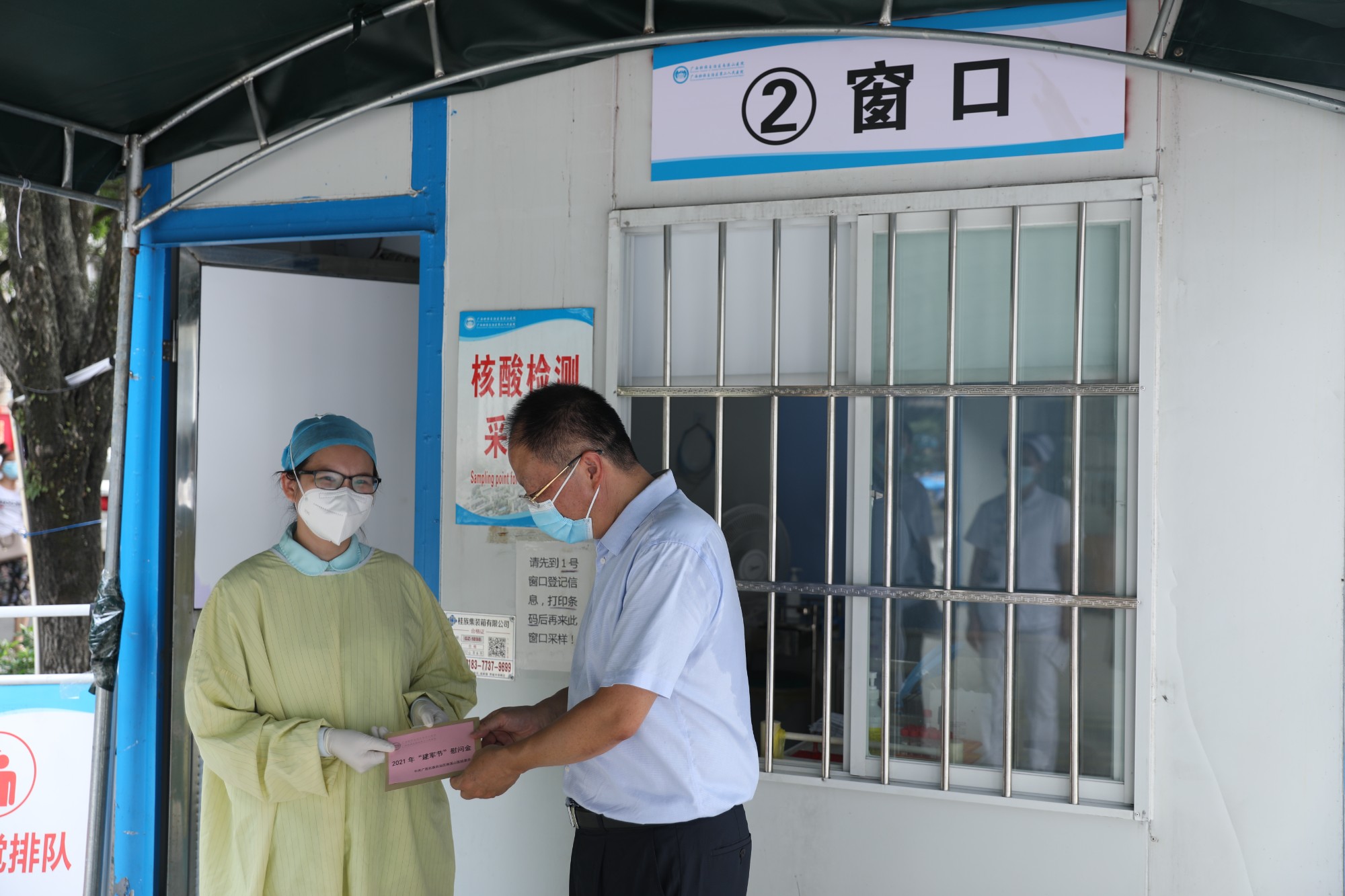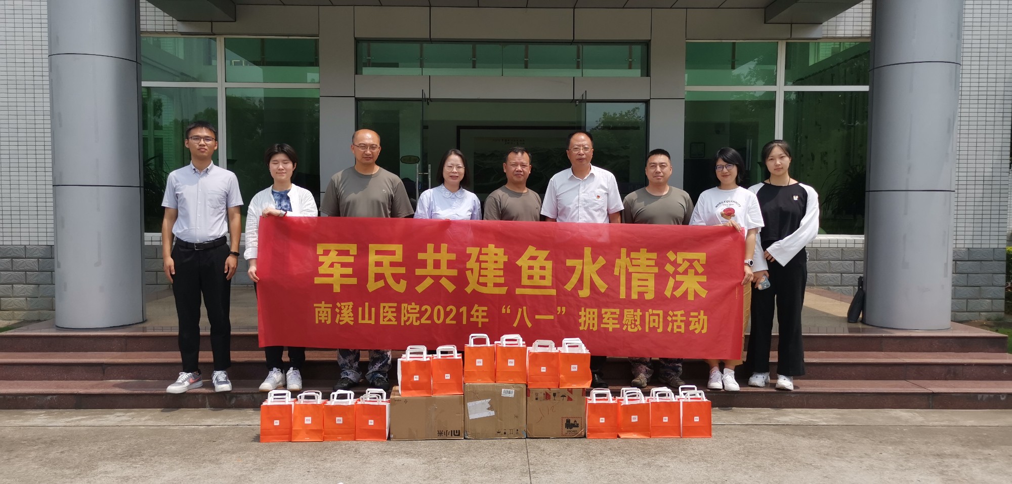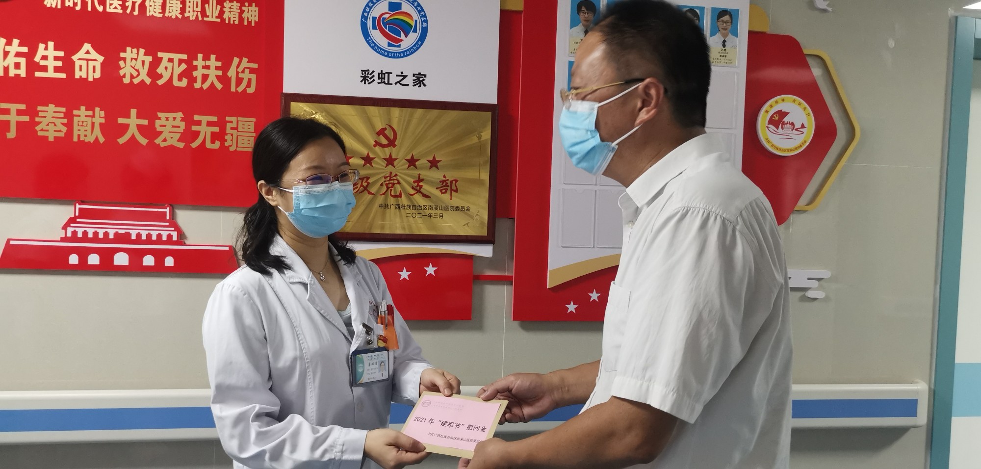 在中国人民解放军建军94周年到来之际,国家退役军人事务部、中央军委政治工作部联合下发通知,要求各地深入贯彻落实习近平总书记关于加强军政军民团结的重要指示,扎实做好节日期间拥军优属、拥政爱民工作,汇聚强国兴军强大力量,为实现中国梦强军梦不懈奋斗。为巩固和发扬拥军爱民、双拥共建好的优良传统,增强职工的国防、拥军意识,体现医院对人民子弟兵和转业、退伍军人和现役军人家属的敬意和关怀。7月28日至30日,广西壮族自治区南溪山医院党委组成了以医院工会、团委、党办、宣传科等部门人员为主的“八一”慰问小组,先后到医院的军民共建单位开展八一慰问活动。同时,慰问组还上门、深入到工作岗位对医院的100多名退伍军人、现役军人家属进行亲切的慰问。南溪山医院浓厚拥军情节不仅令共建单位的官兵受到了鼓舞、激励,也让在医院工作的现役军人家属和转业退伍到医院工作的老兵倍感温暖。