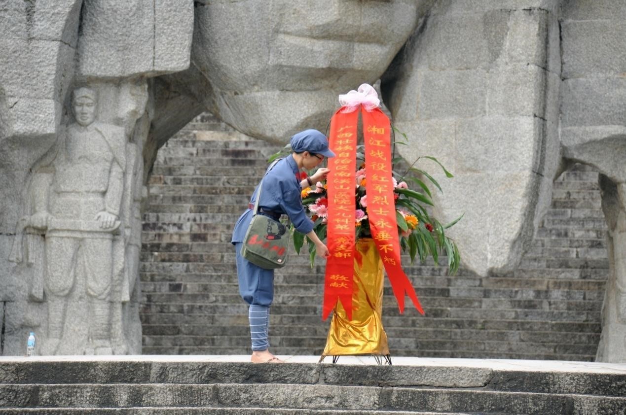 参观展览馆后,他们来到烈士纪念碑前悼念革命先烈。碑前的大型雕塑,让他们看到了湘江战役那场血与火、存与亡的一幅历史画面;头像间“红军”“送别”“长征”“渡江”“永生”五组浮雕,生动的再现了突破湘江战役中惊天地、泣鬼神的悲惨情景。为了表达对烈士们的敬意,在支部书记姚臻的带领下,党员们向英雄们敬献花圈,并在纪念碑前重温入党誓词,牢记党的历史,坚定党的信念,学习老一辈共产党员艰苦奋斗、甘于奉献的革命精神,敢于吃苦、乐于奉献、立足岗位、争当表率,为实现中国共产党第二个百年奋斗目标而努力。