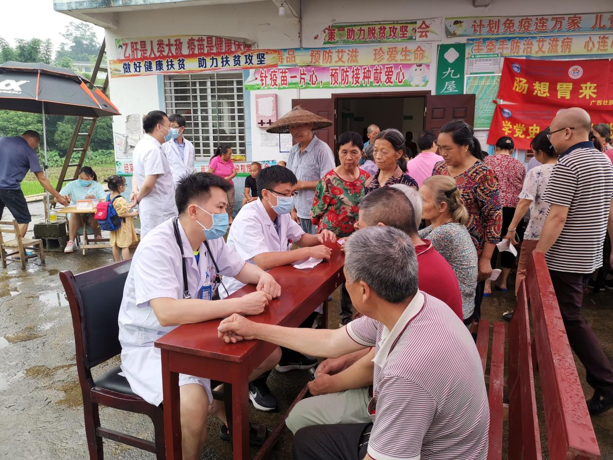 近日,广西壮族自治区南溪山医院胃肠肛管疝腹壁外科联合灵川县人民医院外一科、内一科、麻醉科组织近30余名医务人员深入灵川县九屋镇西岭村,以“党建手牵手,服务心连心”为主题开展大型下乡义诊活动,为建党百年献礼。活动内容包括常见疾病筛查、健康问题咨询、健康知识宣讲、科普小讲堂等,形式多样,内容丰富。