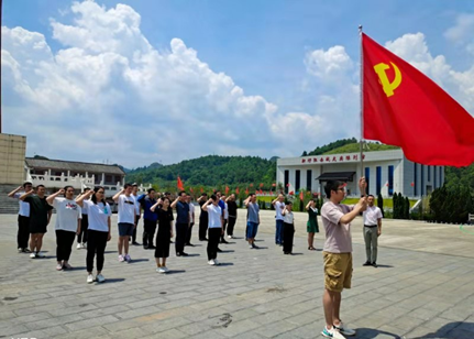 到达新圩阻击战酒海井红军纪念园后,在讲解员的引导下,党员们浏览了大量的珍贵史料,重温了昔日革命历程。新圩阻击战是湘江战役中的重要一战同时也是湘江战役的第一枪,参加新圩阻击战的红军部队担负保证整个红军队伍左翼安全、掩护中央领导机关和红军主力部队过湘江的重任,他们以大无畏的英雄气概和牺牲精神,以高度的革命觉悟和严格的纪律,用生命坚决贯彻“不惜一切代价、全力坚持三天至四天”的指令,其中红军34师更是为中华苏维埃流尽了最后一滴血。英雄先辈们的事迹感动了在场的听众,医务人员纷纷表示要学习先辈们为党为国为人民的大爱精神。在纪念碑前,全体党员深切悼念为中国革命事业英勇献身的革命烈士、向英雄献花、鞠躬并重温入党誓词,向他们为革命理想献身精神表示崇高的敬意。