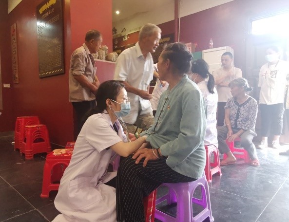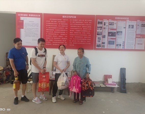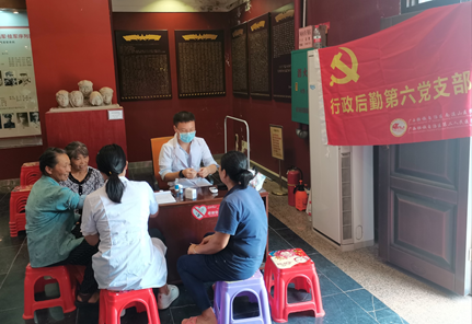 参观学习结束后,随行的医护党员为红色基因传承者李青鸾老人、红色教育基地管理人员及周围居民提供了健康体检,询问他们的健康状况、解答疾病的预防和保健常识,提出科学作息、饮食的建议并免费测量血压、血糖等。