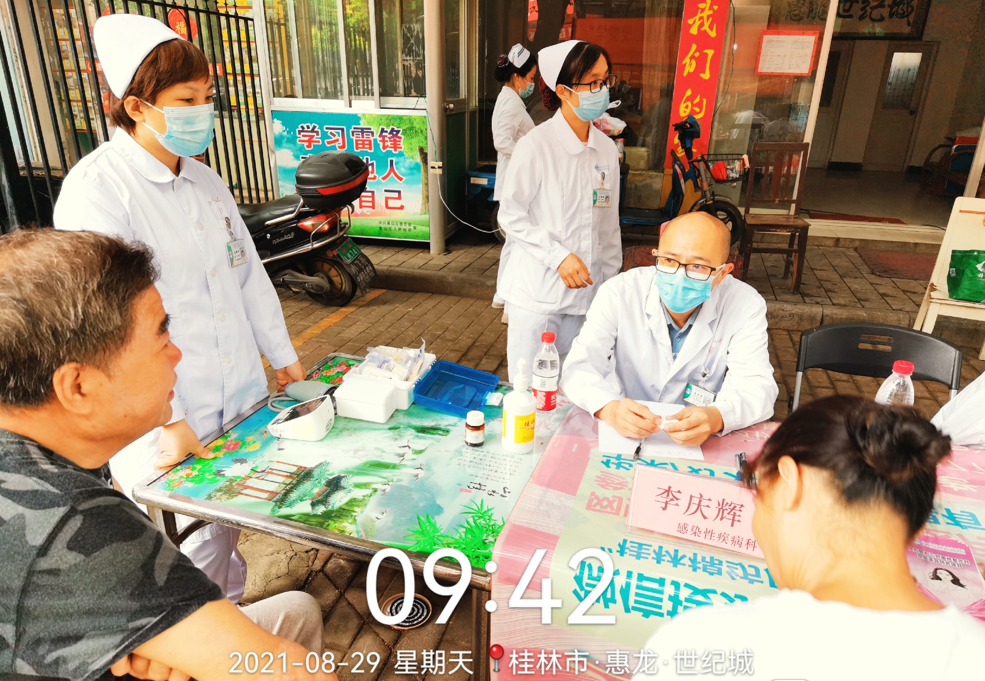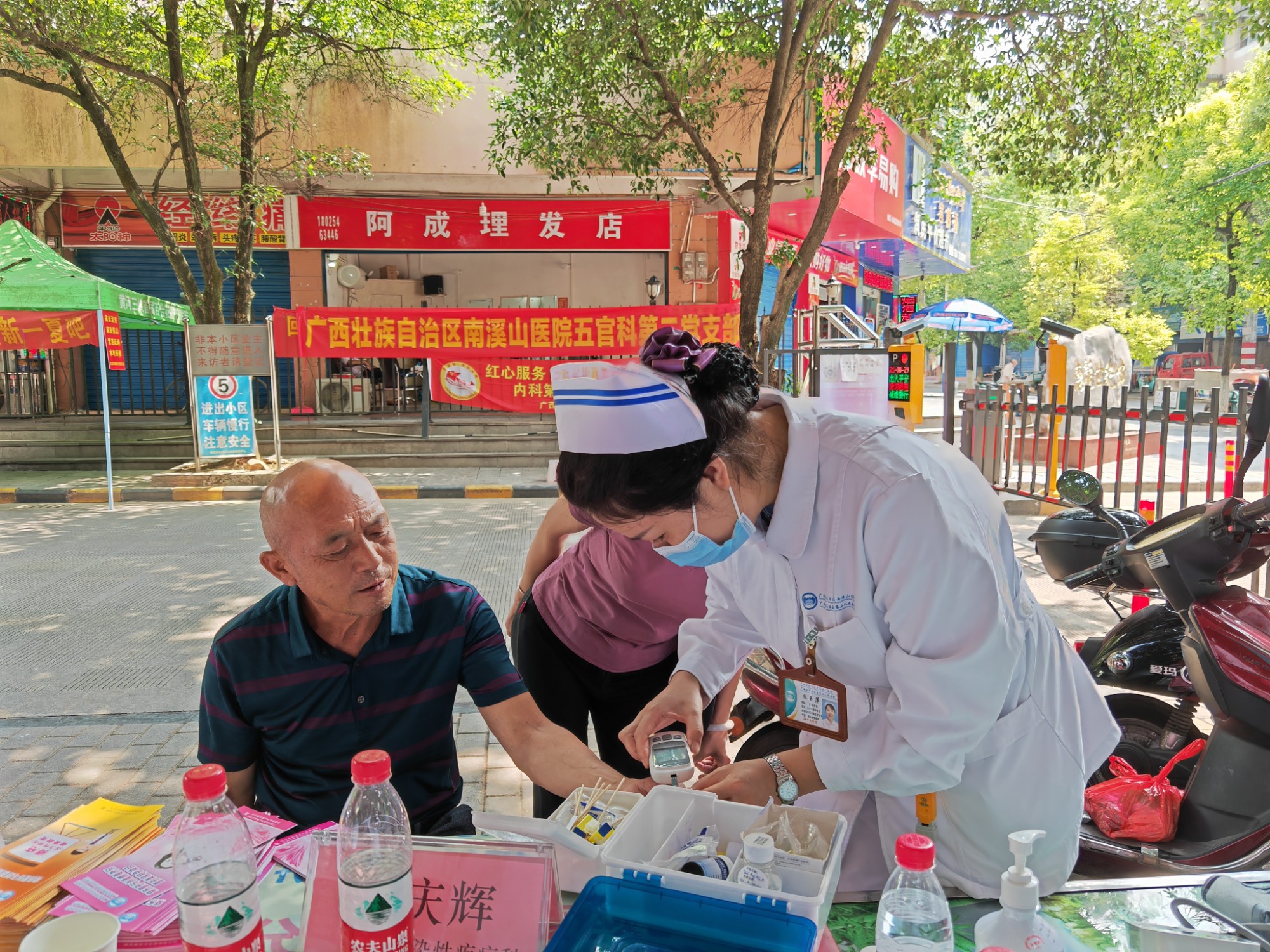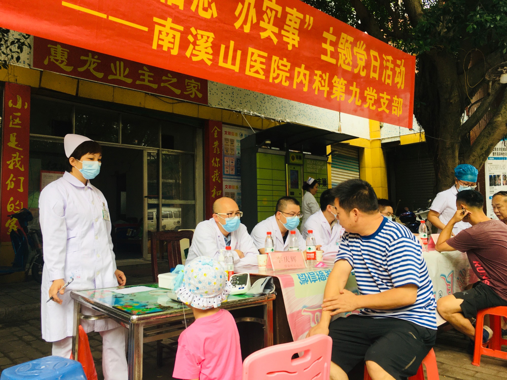 当天上午,这几个支部中来自感染性疾病科、消化内科、眼科及烧伤整形创面修复外科的医护人员来到位于同心社区的惠龙世纪城小区,在物业服务中心的帮助下,专家们耐心了解问诊群众的身体情况,分析引起不是的原因,并针对不同病情及个体差异提出相应的诊疗建议和治疗方案。护理人员则为群众免费测血压、血糖,在检查过程中还筛查出了一些血压及血糖控制不稳定的小区群众,并给予了相应的专业指导。