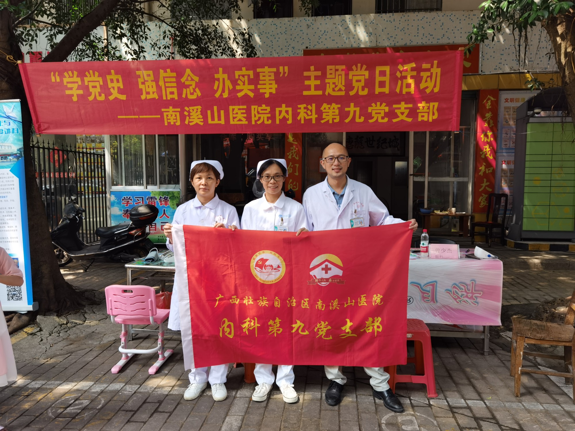 为践行“学党史 强信念 办实事 为民送健康”的宗旨,8月29日,广西壮族自治区南溪山医院内科第九党支部联合内科第五党支部、五官科第二党支部、外科第十一党支部到同心路惠龙世纪城小区开展多学科联合义诊活动,为小区居民在家门口解决常见病及疑难困惑。