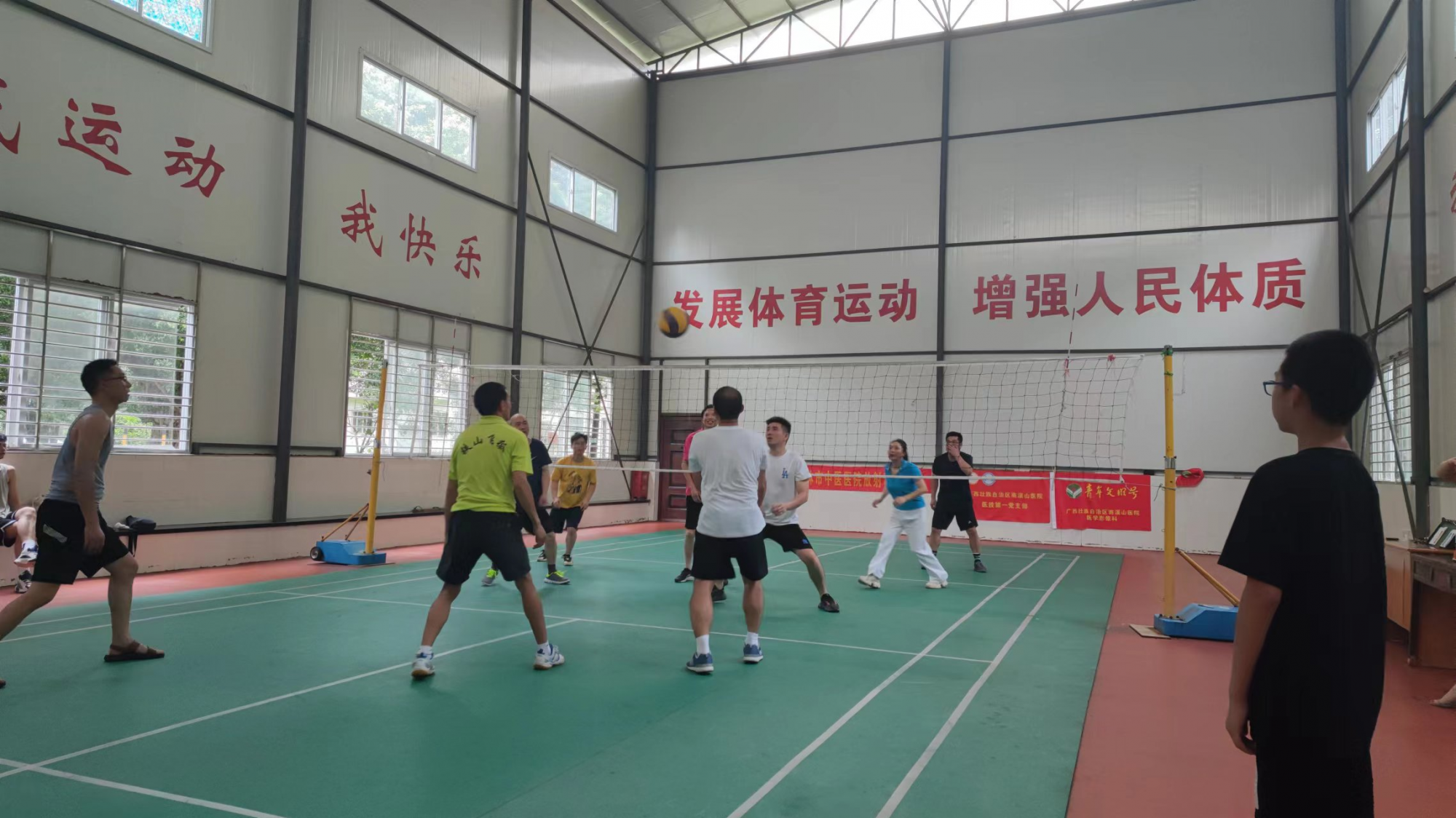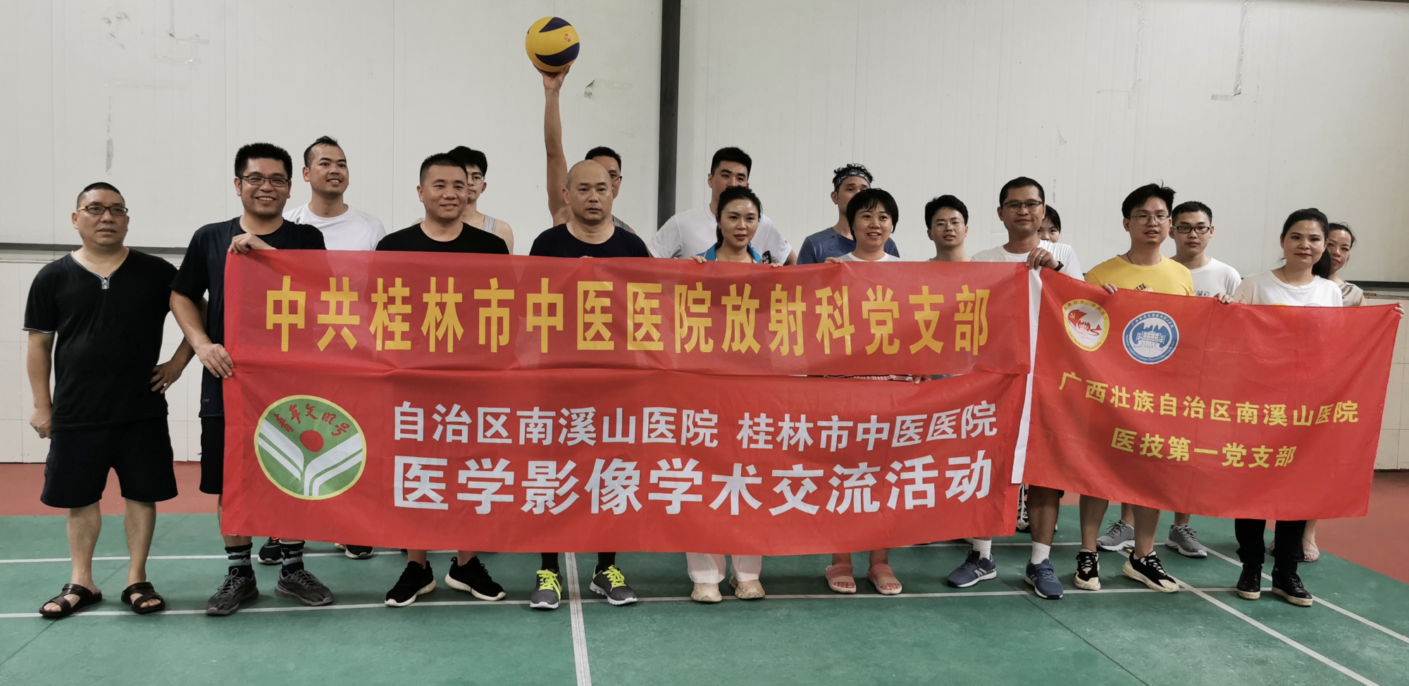 7月2日,自治区南溪山医院医技第一党支部与桂林市中医医院放射科党支部的党团员青年一起开展了友谊气排球赛、青年学术交流和抗疫故事分享等系列主题活动,增进双方友谊。