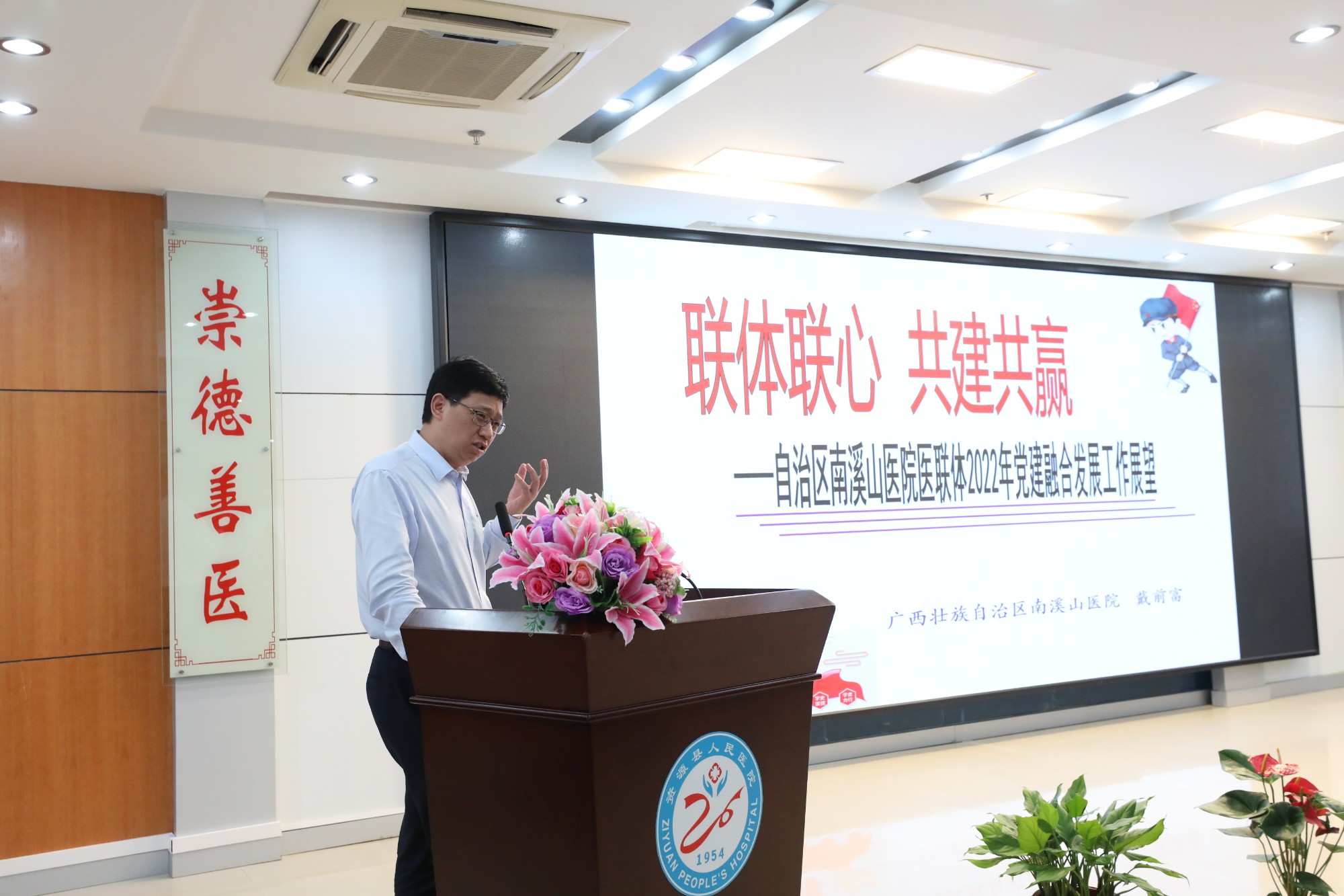 党建强联固本培元。南溪山医院党委在持续落实及时跟学增素养理论学习要记录通报机制基础上,通过讲好“双一”政治思想课,强政治思想基础。5月27日,该院纪委书记喻泽军以“以严纪律严作风,推进清廉医院建设”为主题,结合广西卫生医疗领域党员干部违纪违法案例,分析当前反腐败斗争的形势,解析“四种形态”的运用,要求9家医联体成员单位围绕四大聚焦、推进八廉行动,聚力打造以“党风清正、院风清朗、医风清新、行风清明”为主要目标的清廉医院建设;该院党委书记戴前富以“联体联心·共建共赢——自治区南溪山医院医联体2022年党建融合发展工作展望”为主题,向与会人员描绘了医联体发展的美好憧憬和实施路径,尤其是通过建好一张网络、共享5G数字医疗,建好互动平台、共话医疗业务交流,建好双向转诊平台、深化分级诊疗实施,以党建引领实现发展惠民。