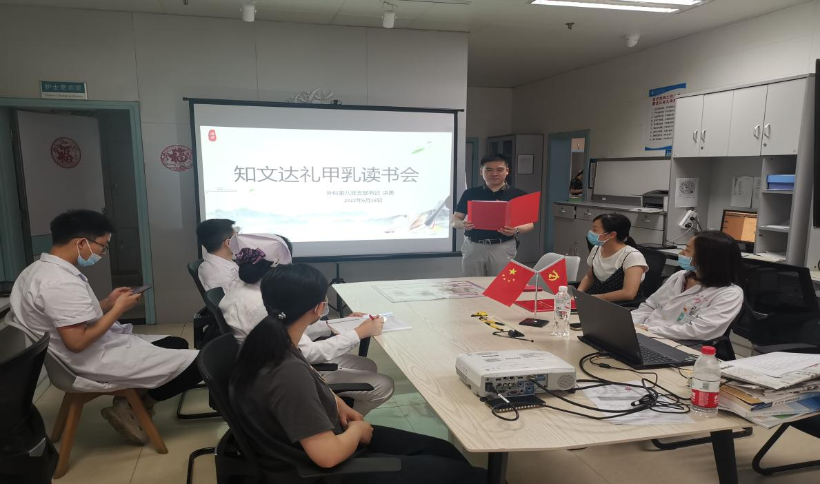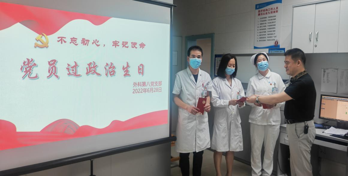 为迎接中国共产党成立101周年和党的二十大胜利召开,6月28日,广西壮族自治区南溪山医院外科第八党支部开展“庆七一·喜迎二十大·奋进新征程”主题党日活动,培养党员爱党爱国情怀。
