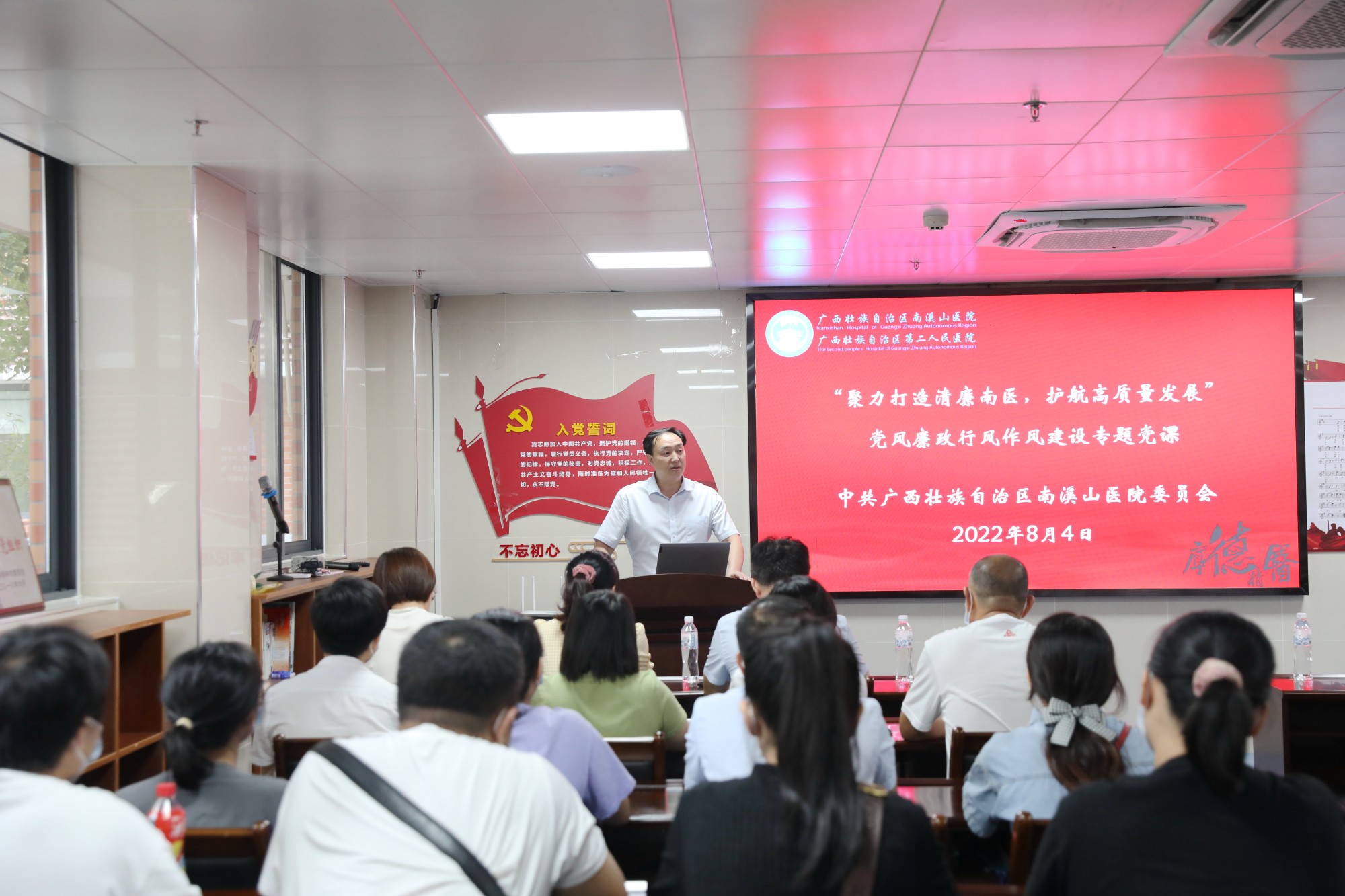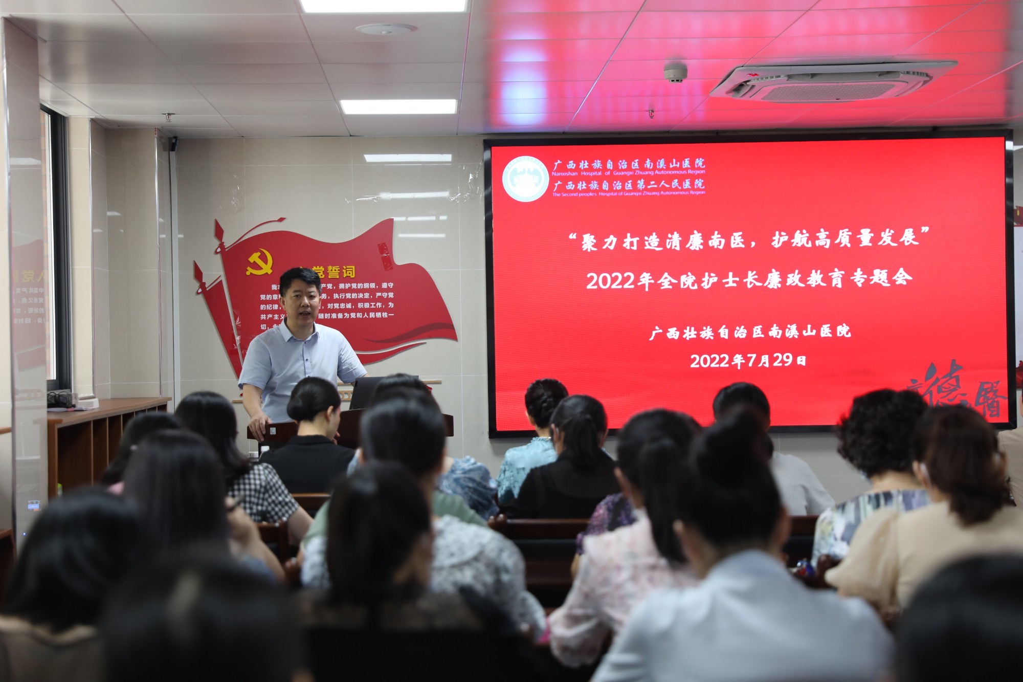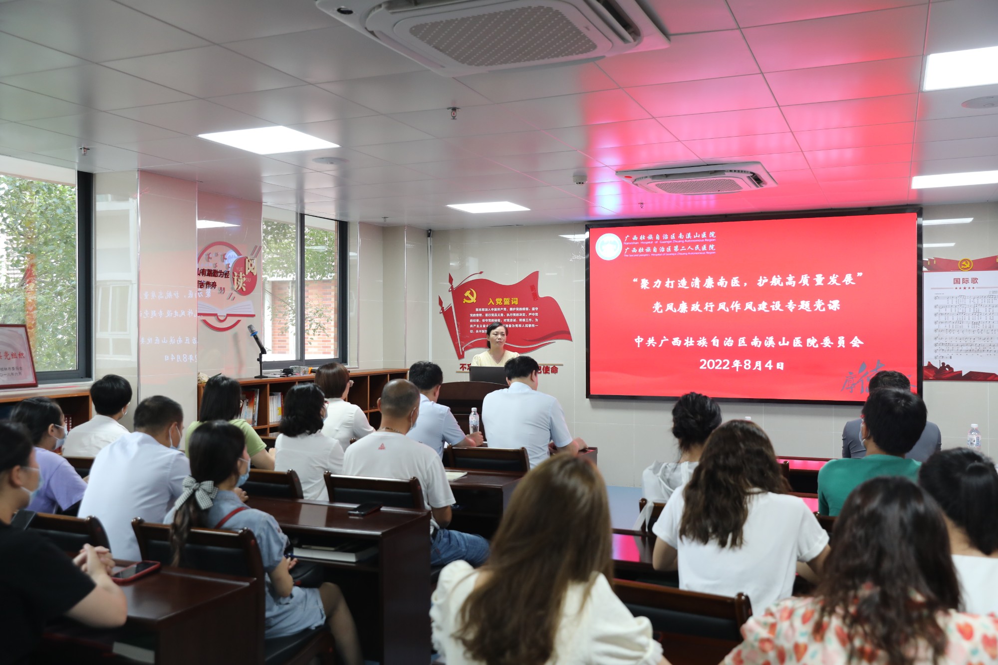 为持续巩固专项纠治行动成效,深化党风廉政行风作风建设,近日,广西壮族自治区南溪山医院党委、纪委结合身边典型案例,深入各党支部、各科室广泛开展廉政党课系列教育活动,完成对重点部门、关键岗位和耗材使用量大的科室以及全院护士长的全覆盖,推进清廉南医走深走实,护航医院高质量发展。