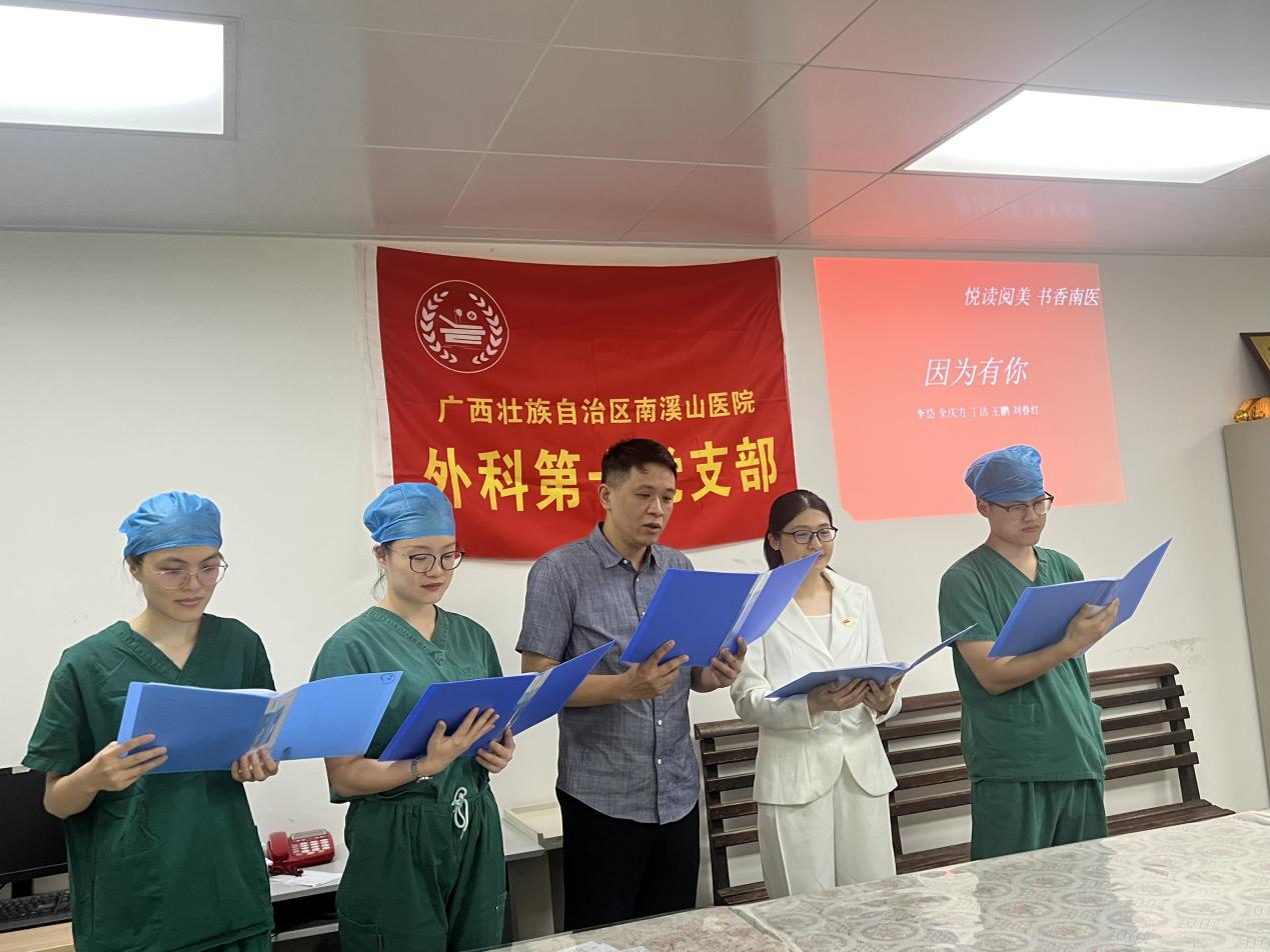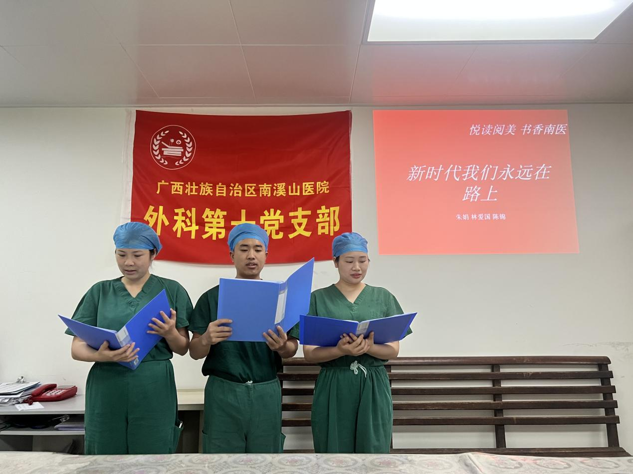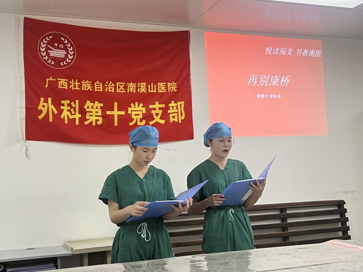 6月23日,广西壮族自治区南溪山医院外科第十党支部(麻醉科、手术室)举行以“悦读阅美,书香南医”为主题的读书分享会与诗歌朗诵比赛,给平日严肃、紧张、神秘、快节奏的麻醉科、手术室增添了浓浓的书香气息。