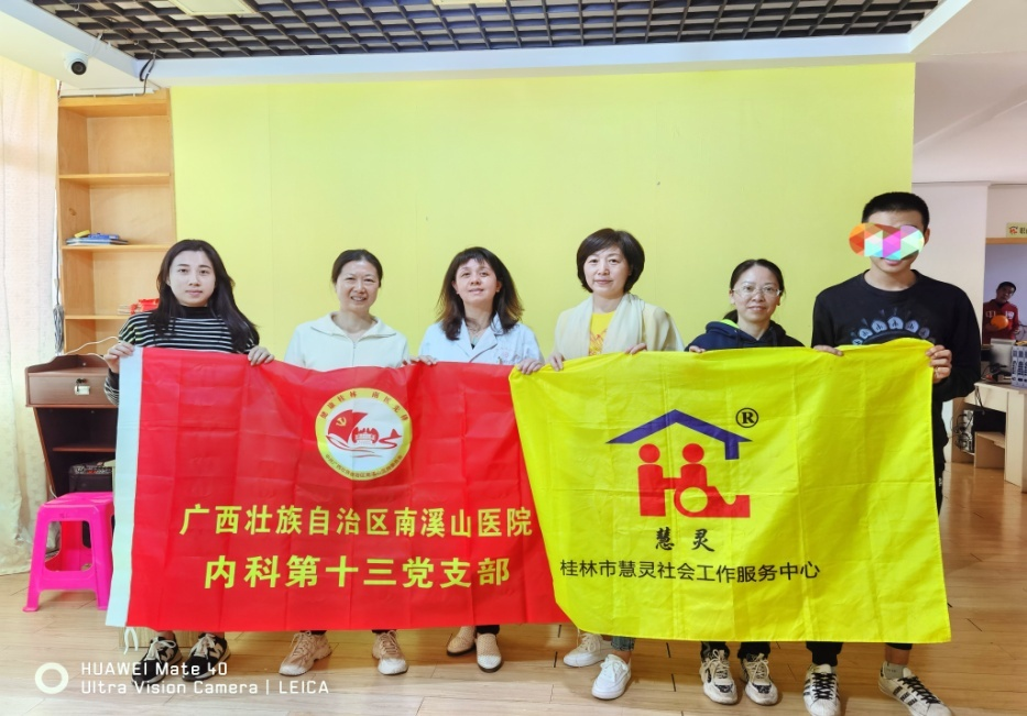 三月是学雷锋月,3月18日,广西壮族自治区南溪山医院内科第十三党支部组织党员到桂林市慧灵社会工作服务中心开展“与爱同行,共享阳光”助残学雷锋健康防治宣传活动。