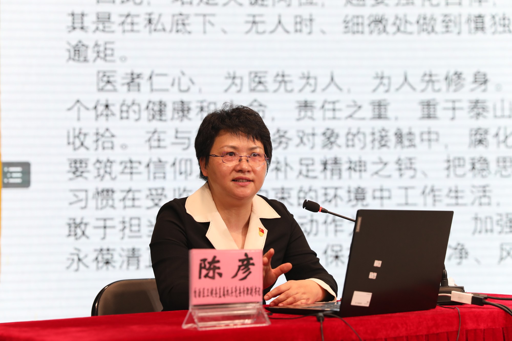 为深入贯彻落实《自治区卫生健康委党组关于大力推进清廉医院建设实施方案》精神,5月14日,自治区南溪山医院举办清廉医院建设专题辅导班。自治区卫健委直属机关党委专职副书记陈彦以《以案为鉴,筑牢防腐城墙》为主题进行了专题培训。医院各党支部书记、支部委员,重点岗位、关键人员以及部分中层干部共计300余人参加培训。