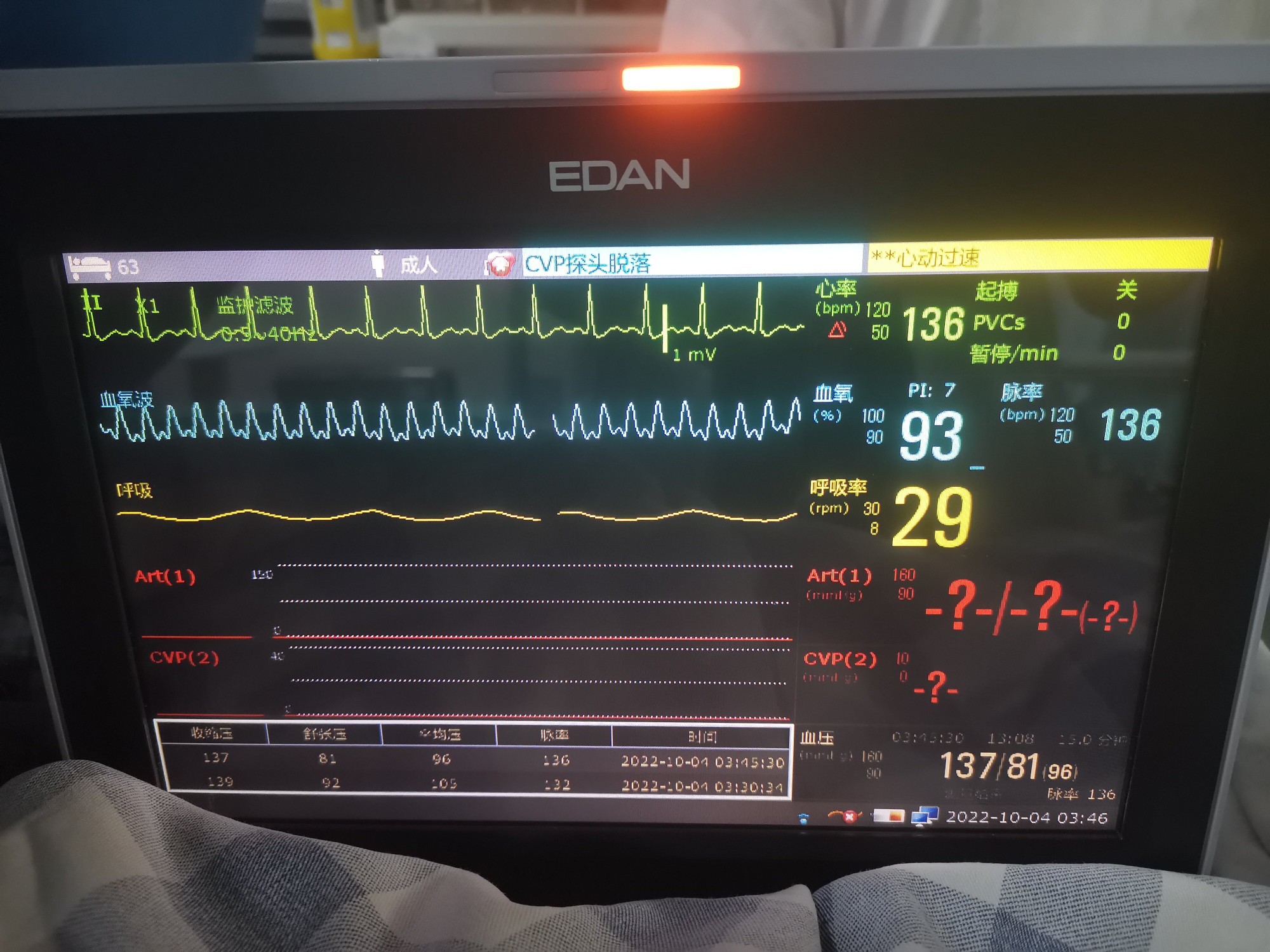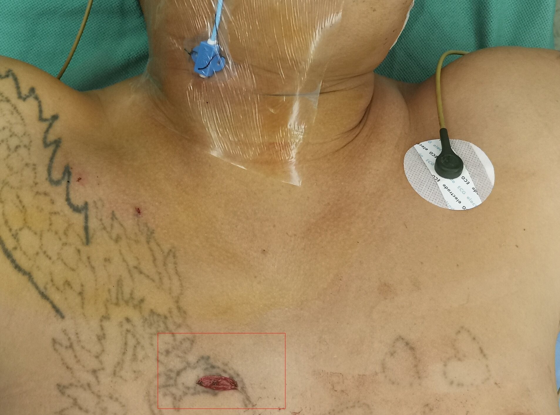 据悉,该患者受伤后立即呼叫“120”就近送入当地蒙山县人民医院抢救,急诊CT提示心包填塞、纵隔血肿,考虑心脏破裂可能。当时神志呈昏睡状,四肢末梢冰冷,右胸部有一伤口随患者呼吸有活动性出血,测血压66/46mmHg,心率133次/分,呼吸急促。患者命悬一线!立即被送往重症医学科(ICU)进一步抢救。