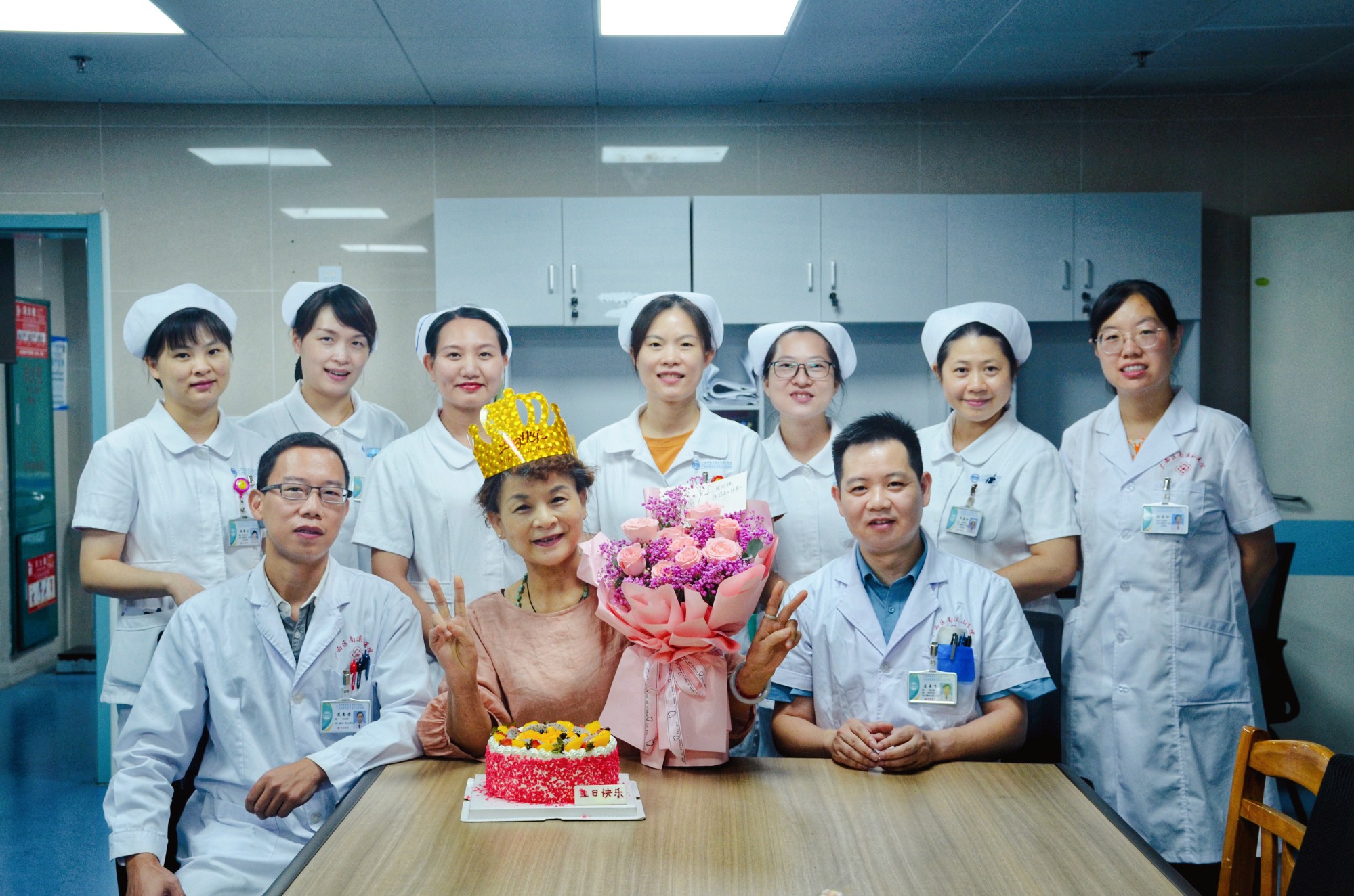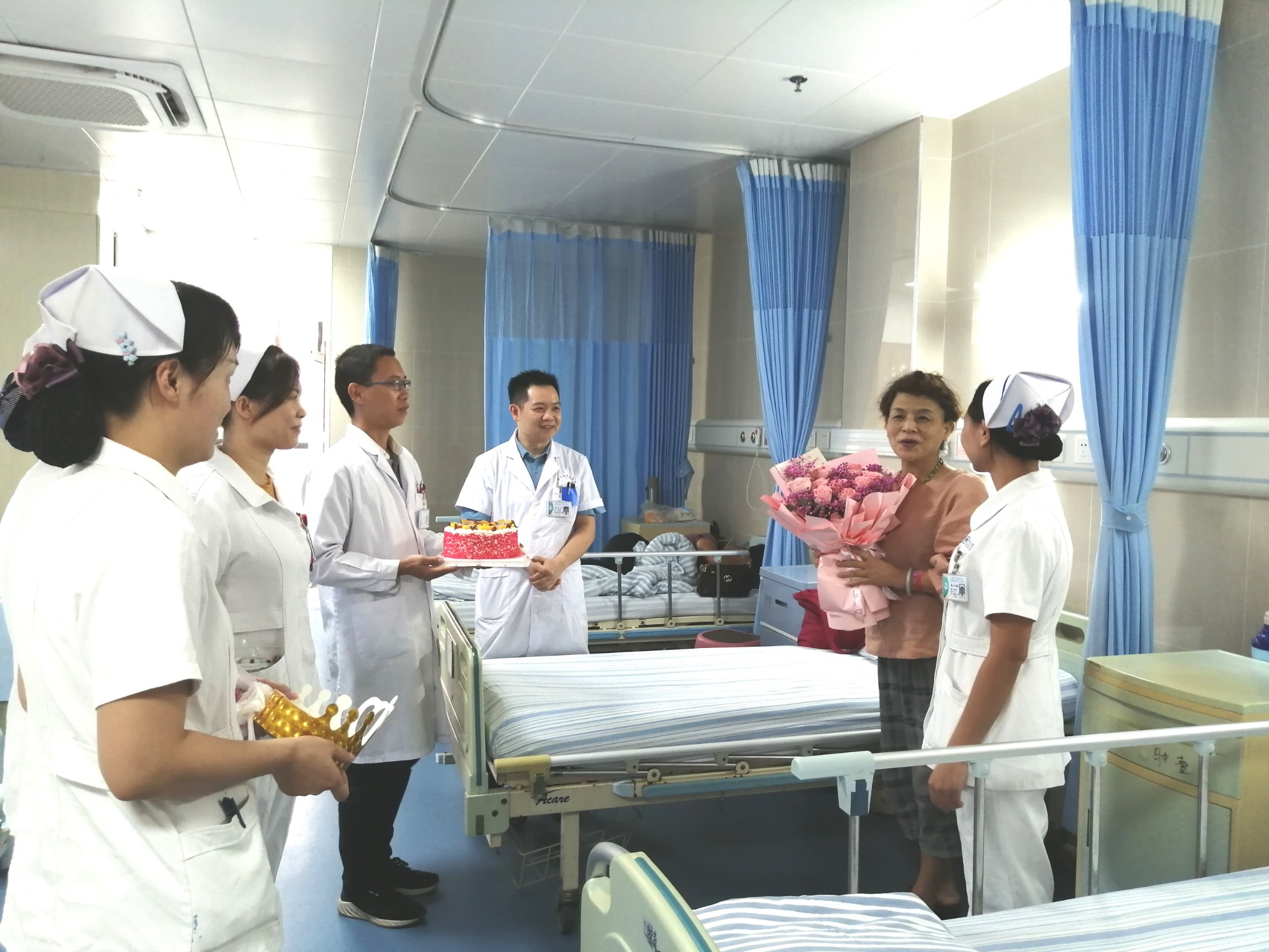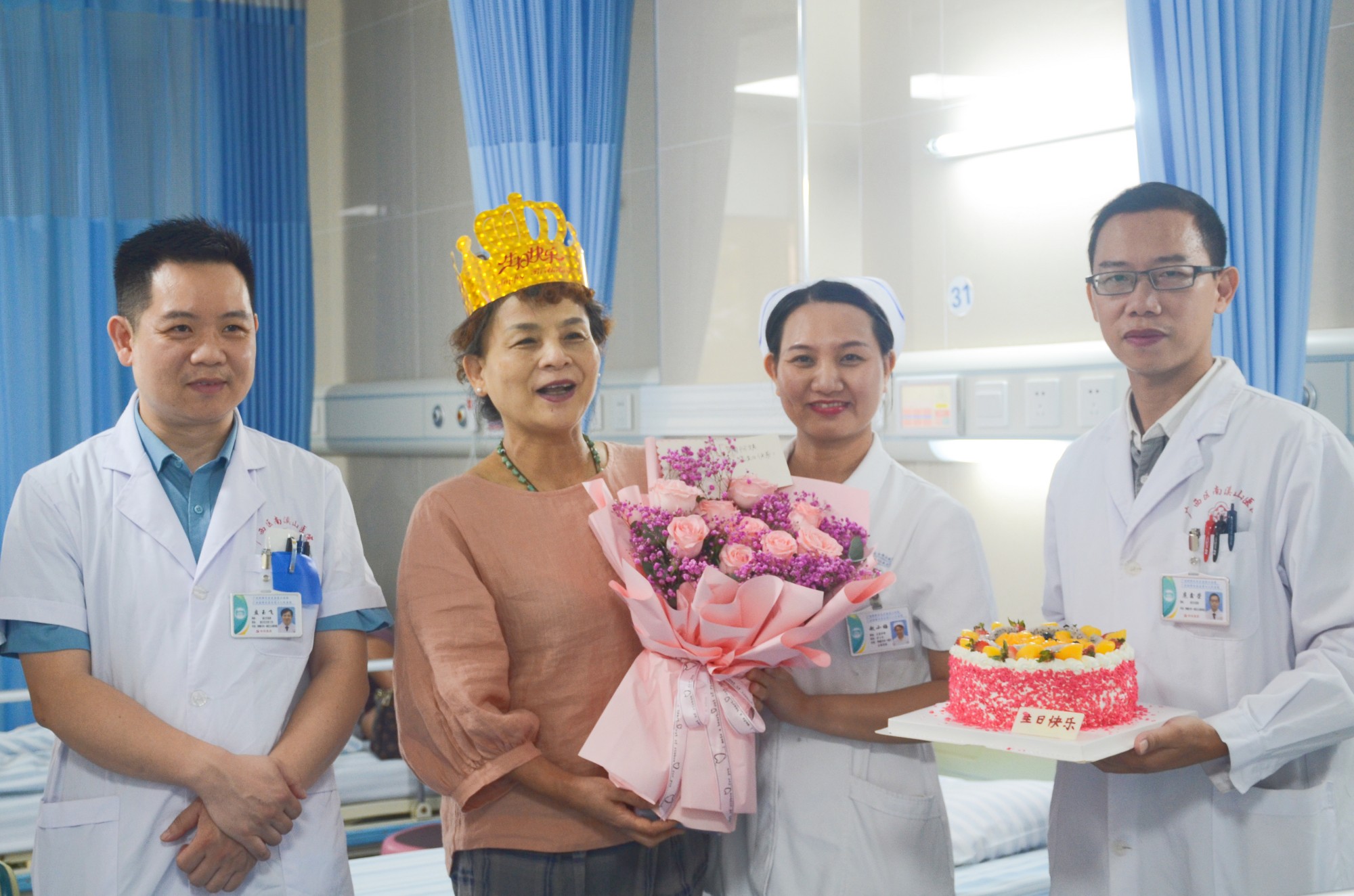 “祝你生日快乐,祝你生日快乐..........”8月1日,自治区南溪山医院肿瘤内科一病区病房里阵阵回荡着祝福的歌曲,原来这一天是患者周阿姨65岁生日,科室医护人员正在为患者周阿姨庆祝并为她送上鲜花、蛋糕和祝福。