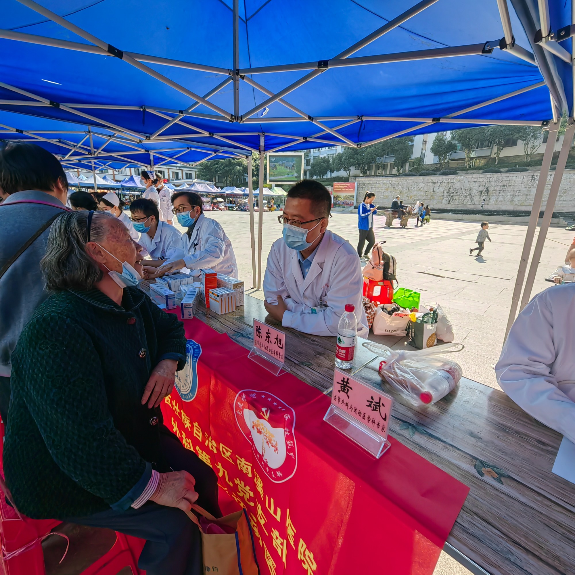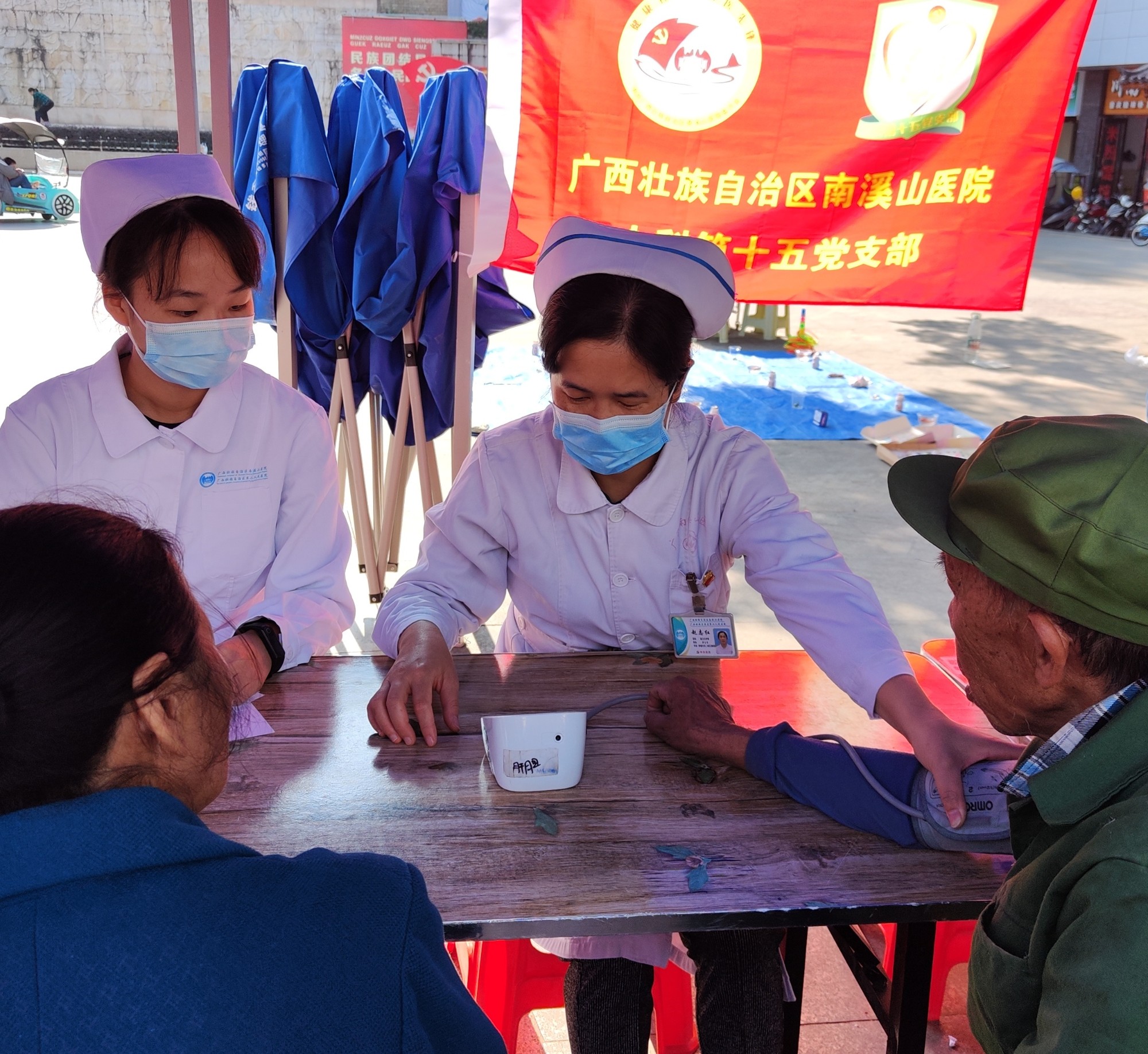 到达龙胜县民族广场后,参加活动的胸外科、肝胆胰脾外科、运动医学与关节外科、妇科、肿瘤内科二病区、心脏大血管外科、呼吸与危重症医学科二病区、门诊等科室的医务人员们为当地居民提供了耐心细致的义诊服务。除常见疾病诊治咨询外,义诊活动同时提供免费测血压、血糖和免费送药等服务。在义诊中,专家们发现当地很多老年人血压偏高,并且大多数没有使用降压药治疗或治疗不规范,针对这些高血压老年人,专家现场进行了耐心细致的宣教,免费赠送相关药物。据统计,本次义诊总计服务326人次,受到当地群众的热烈欢迎。
