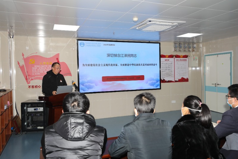医院领导向大家介绍江泽民同志的丰功伟绩