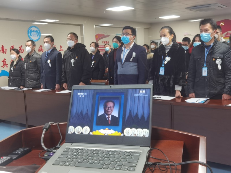 12月6日,举国哀悼江泽民同志!上午十点,广西壮族自治区南溪山医院党委组织该院党员和医务人员代表集中收看追悼大会直播,并集体默哀。大家怀着无比沉痛的心情,垂首肃立,深切缅怀江泽民同志的卓越功勋,深刻感悟江泽民同志的精神风范,认真聆听习近平总书记的重要讲话。