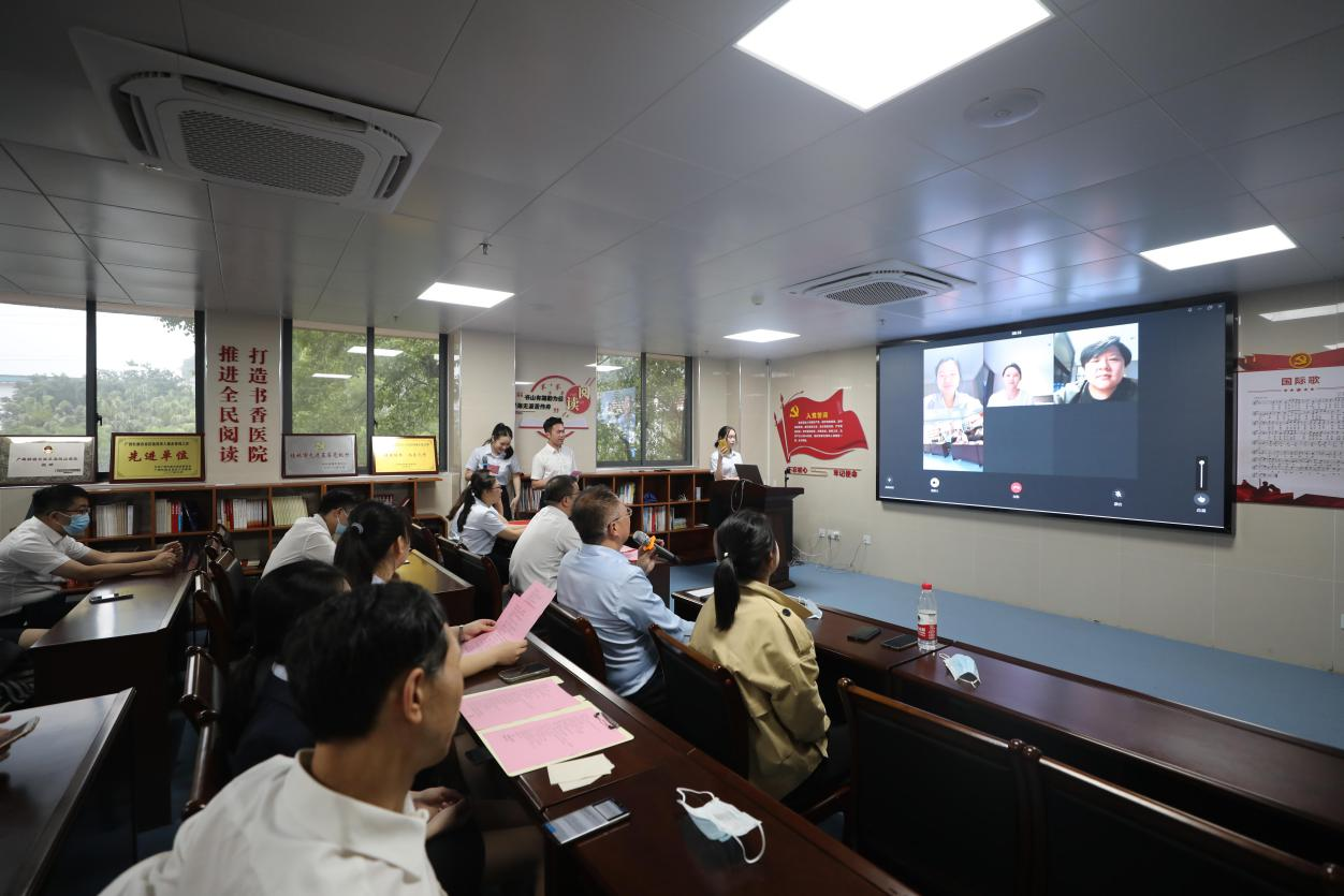 活动首先采用“云慰问”的方式为支援外地疫情防控的团支部书记蒋玲、团员佴柳伶表达了慰问和祝福。让支援人员在外安心工作,时刻感受医院家庭的温暖是他们每天都要做的事,张超群说道:“年轻的脸庞朝气蓬勃,青春的力量一往无前。青年勇敢挑重担,看你们在救治前线发挥先锋队和主力军,你们用实际为卫生健康事业注入活力与激情,感谢你们的的辛勤付出,我们在桂林准备好了桂林米粉等你们平安回来!”