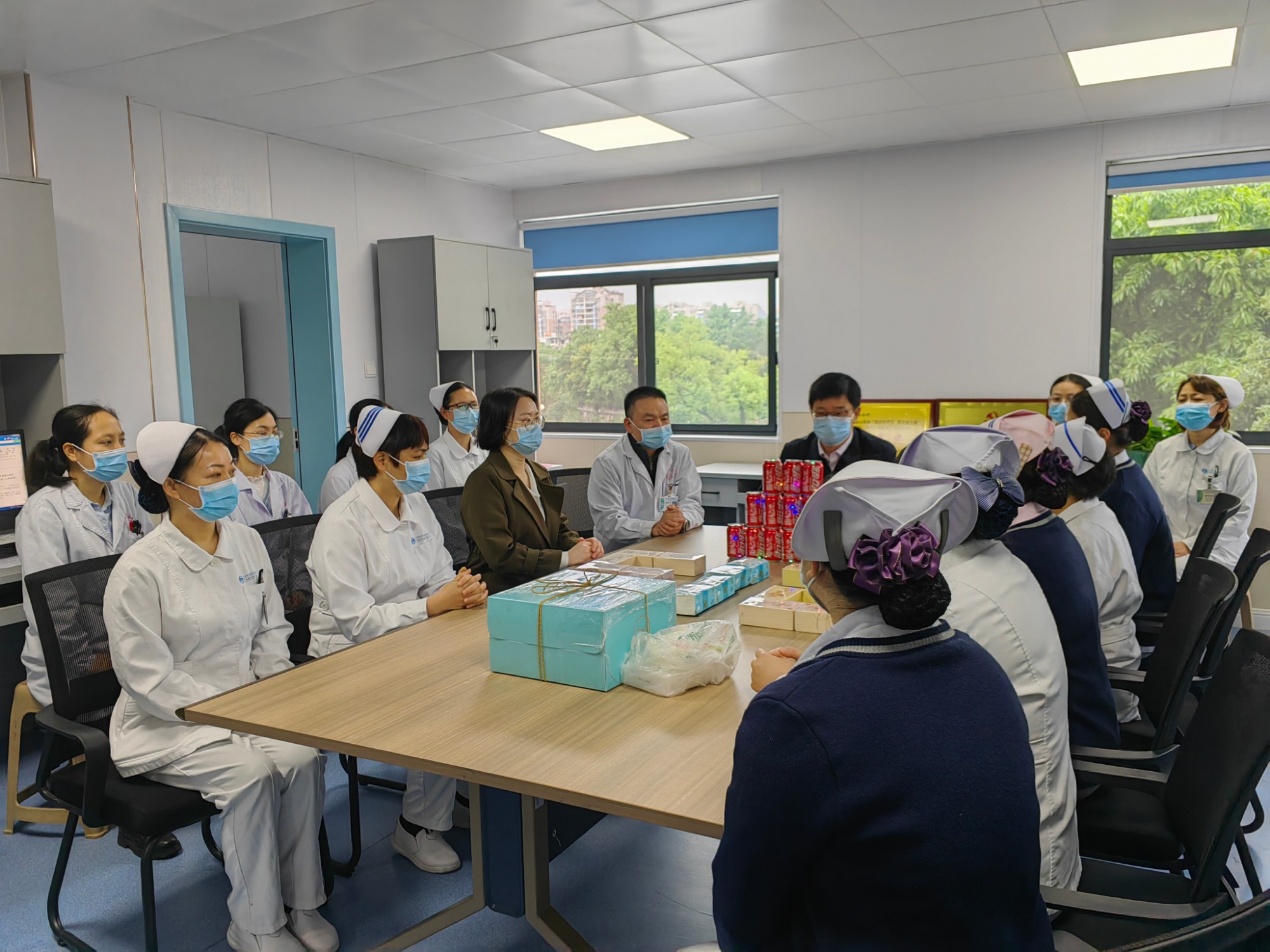 最后,戴前富书记、护理部主任管起招与陆富永主任共同为护士们送去了节日鲜花和礼物。