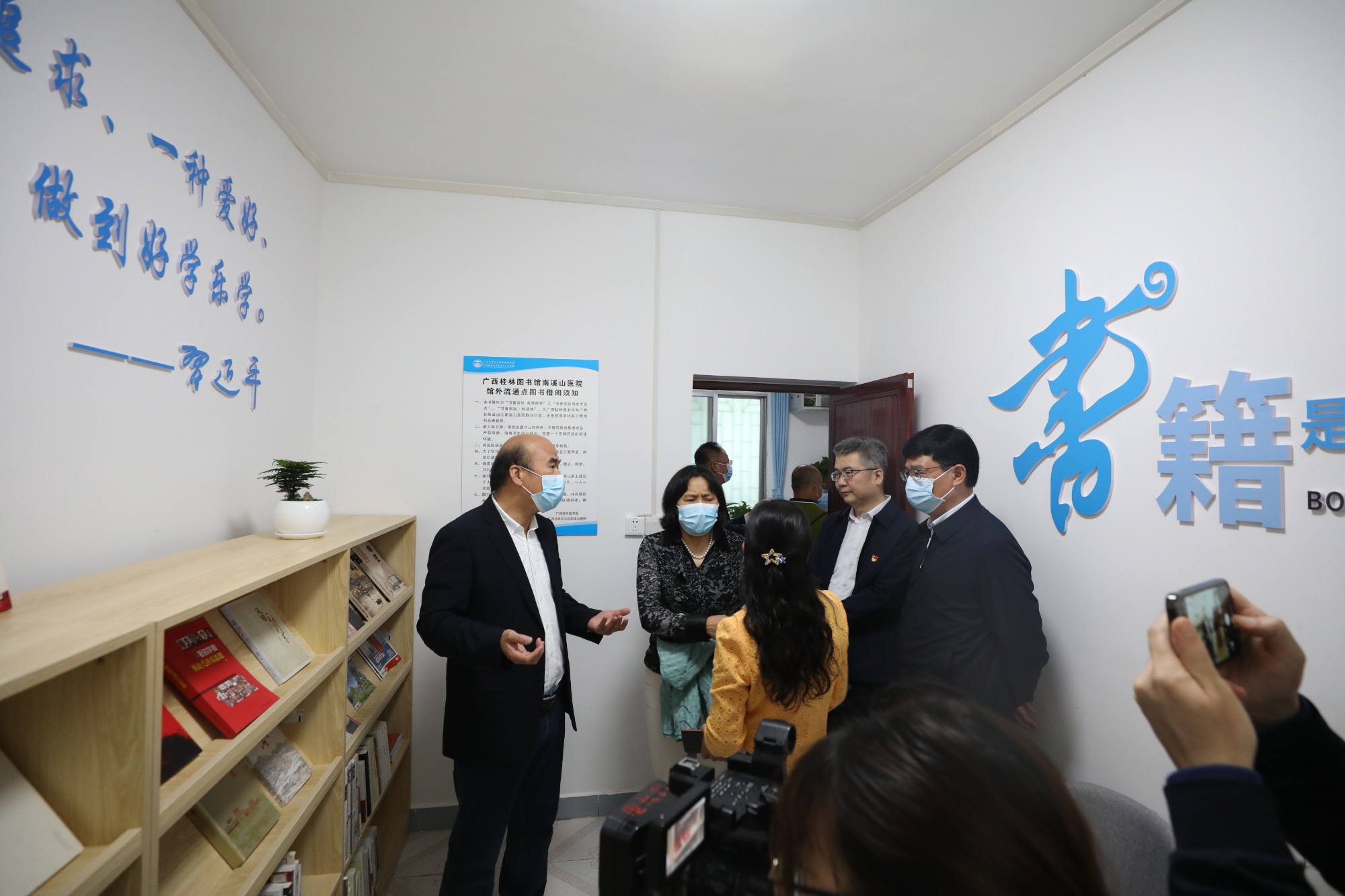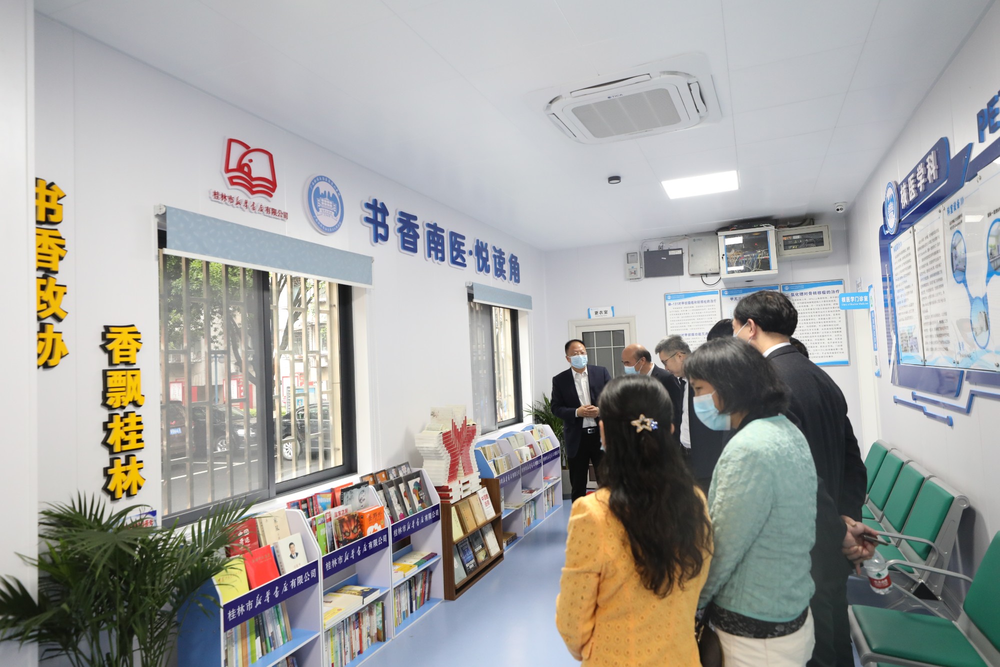 仪式最后,出席活动的领导共同为“书香政协 香飘桂林”之“书香医院创建示范点”揭牌,并现场考察“书香医院”阅读点、“悦读角”建设情况。