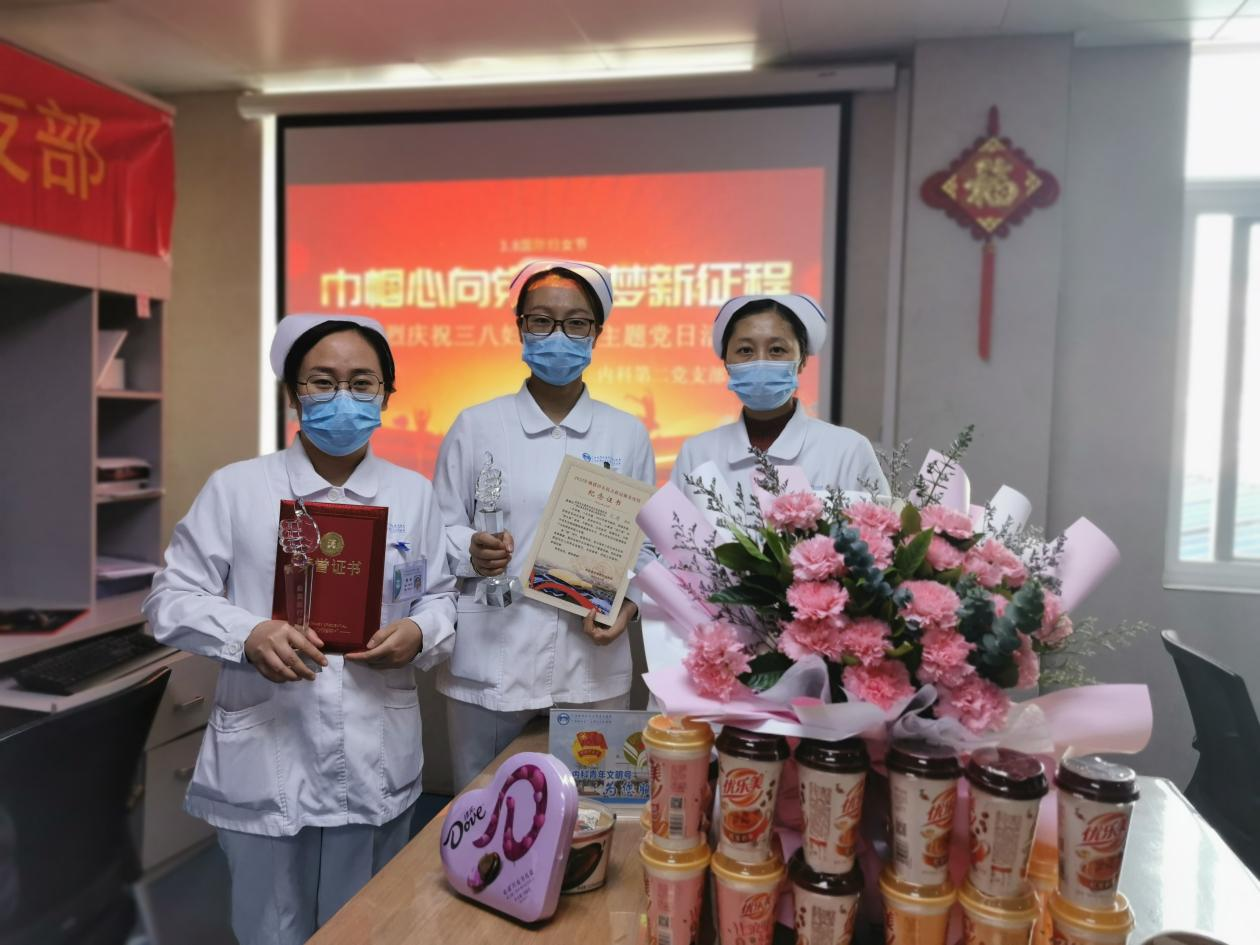 近日,广西壮族自治区南溪山医院内科第二党支部开展“巾帼心向党 追梦新征程”主题党日活动,欢度“三八”国际劳动妇女节,致敬抗疫勇士。