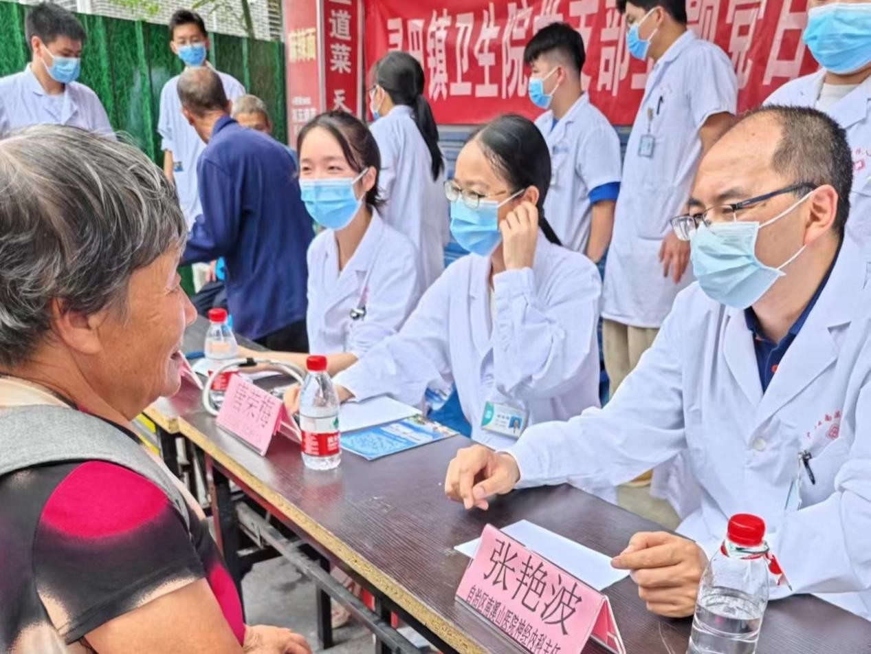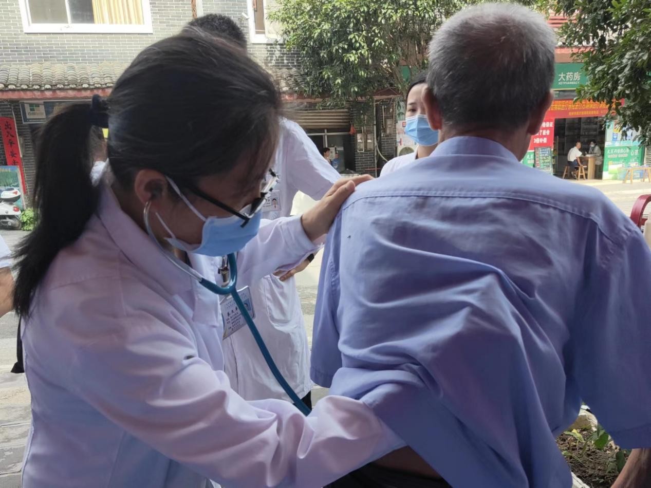 当天上午,南溪山医院康复医学科、神经内科的医师、护士和康复治疗师等17名医务人员,携带听诊器、血糖仪、血压计等小型医疗器械,与当地卫生院医务人员共同为灵田镇居民提供健康咨询、健康宣教和免费义诊服务。