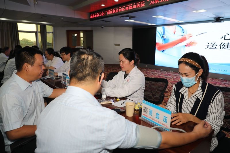 11月3日,桂林市总工会与南溪山医院开展的“为职工办实事,送医送健康进基层”活动第90站走进了中国建设银行桂林分行,这也是桂林市政协委员在行动——“送温暖、办实事、助发展”第63场活动。