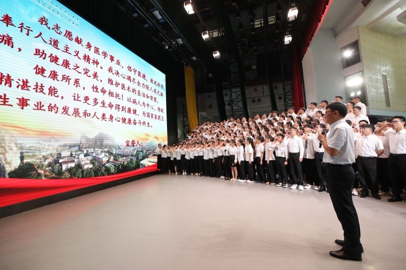 7月21日下午,岗前培训结束后,在医院党委书记戴前富带领下,新职工进行了庄严的入职宣誓。“我志愿献身人类的健康事业,自觉维护医学的尊严和神圣……”一句句铿锵有力的誓言让220名新职工深刻感受到肩上的责任与使命,每个人的脸上都洋溢着坚定与自豪。