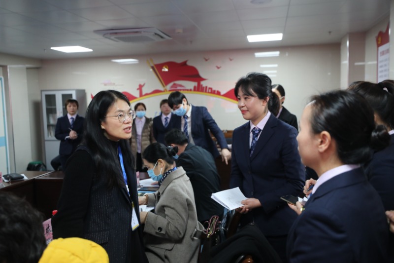 4.评审组专家黄惠桥 (左)与南溪山医院护理人员交流