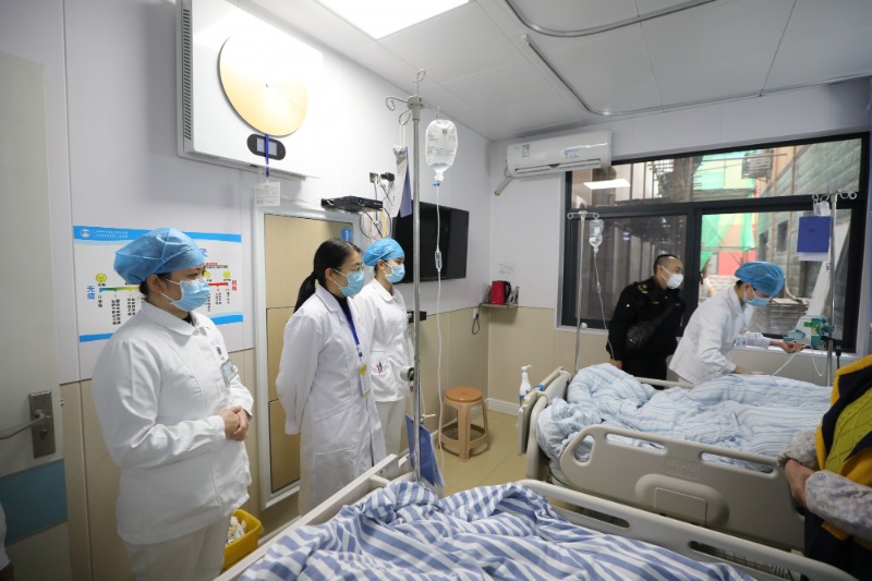 随后,评审专家组来到医院感染性疾病科,现场检查基地建设情况。他们通过实地走访、现场抽问、技能考核、患者访谈等方式,详细了解医院传染病护理工作中的亮点及改进之处,并对基地建设提出合理化建议。