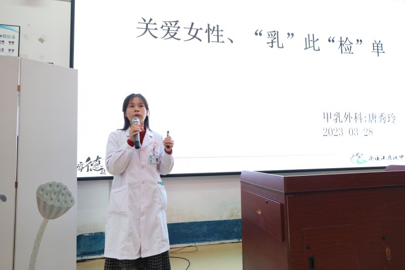 关爱教师健康讲座中,甲状腺乳腺外科医生唐秀玲以《关爱女性 “乳”此检“单”》为题,围绕甲状腺、乳腺的相关疾病及预防措施,向教师们普及健康知识,解读常见的认识误区。