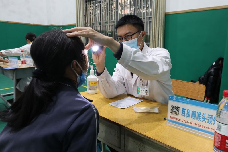 南溪山医院耳鼻咽喉头颈外科专家在为教师职工进行健康检查 伍家琪 摄