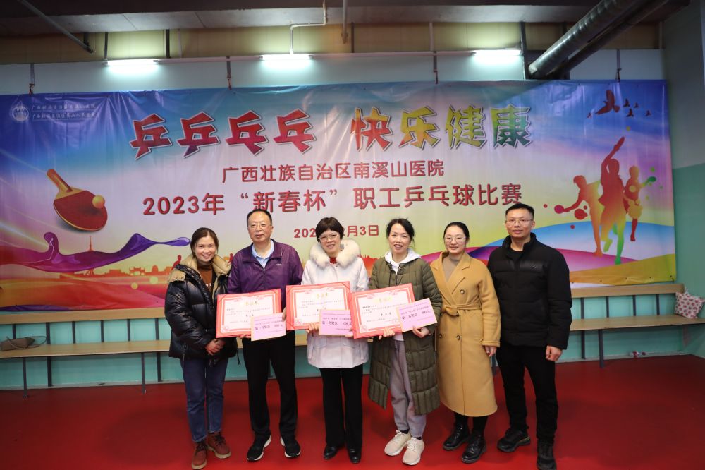 2月9日,自治区南溪山医院2023年“新春杯”职工乒乓球比赛,在桂林市象山区红街乒乓球馆圆满落幕。自2月3日首场比赛以来,通过激烈角逐,此次比赛共产生男女混合团体赛、男子单打和女子单打、最佳组织奖、优秀选手奖等多项获奖结果。