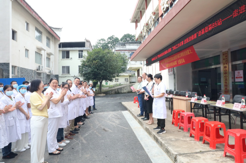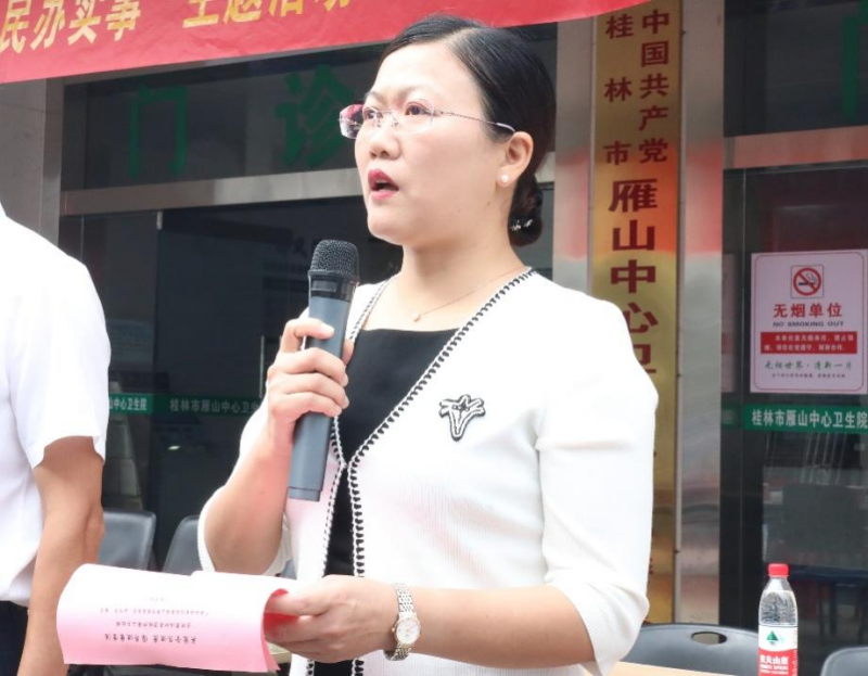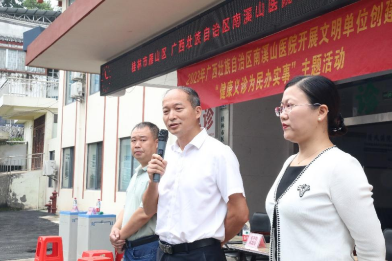 活动由桂林雁山区中心卫生院院长秦桂南主持,桂林雁山区卫健局长范明辉致辞。广西壮族自治区南溪山医院党委委员、副院长唐芬、雁山区政协副主席、总工会主席刘开送先后讲话。