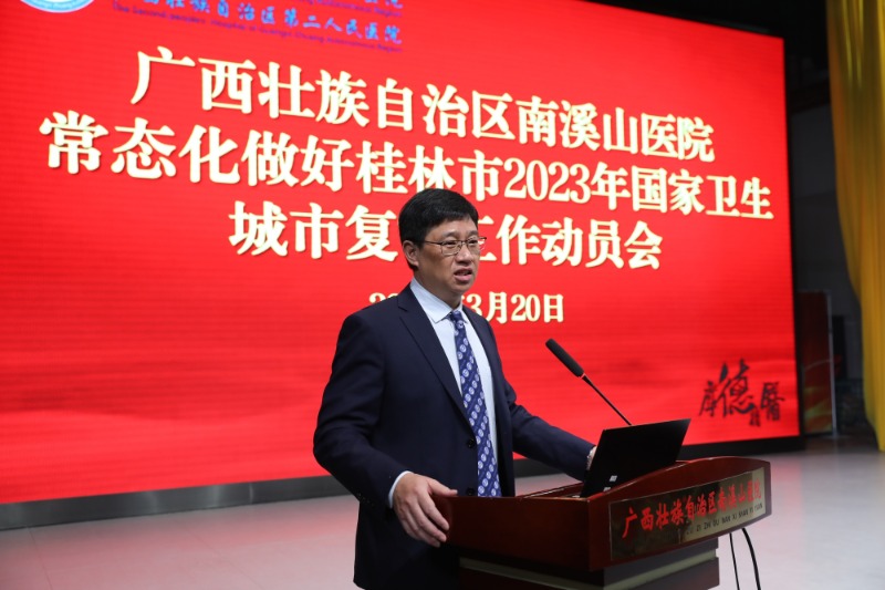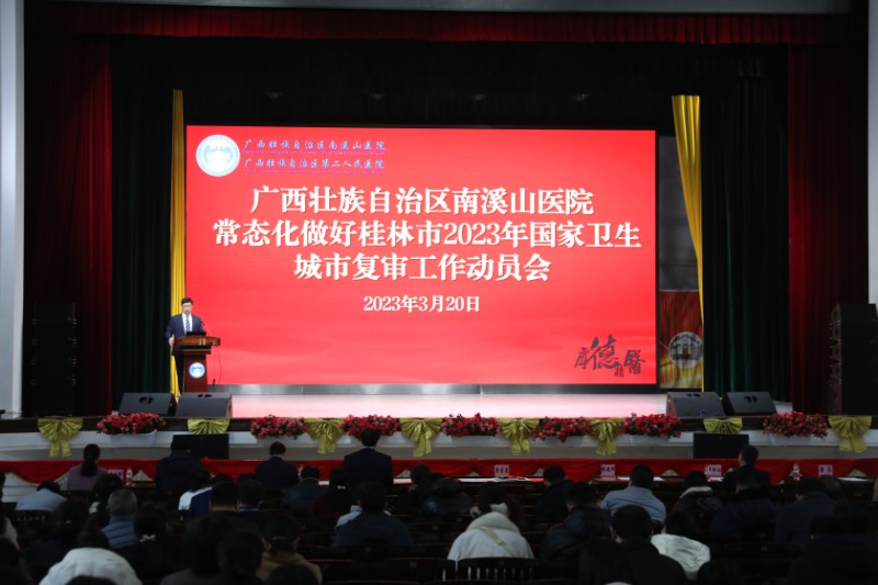 为动员医院干部职工统一思想、迅速行动,全力做好国家卫生城市复审迎检工作,3月20日下午,广西壮族自治区南溪山医院召开常态化做好桂林市2023年国家卫生城市复审工作动员会。