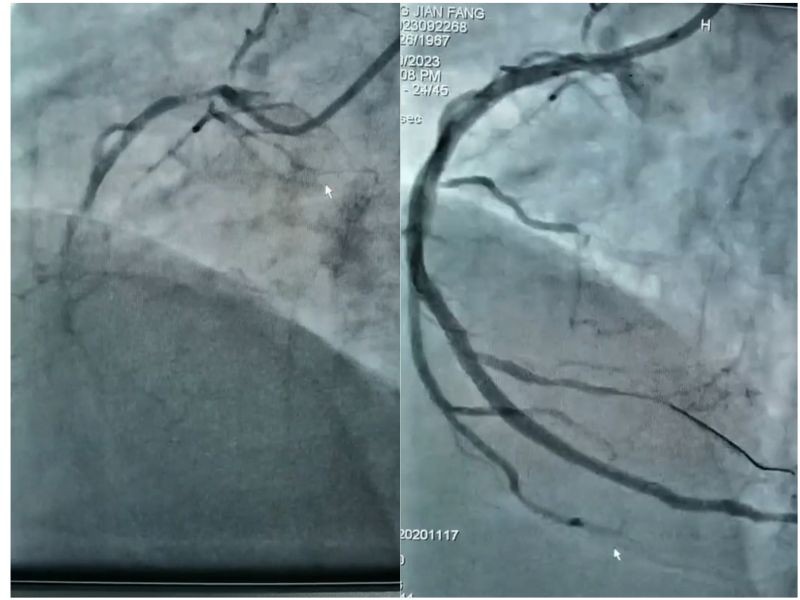 检查发现,蒋女士出现急性心衰主要是因为冠脉病变。人的心脏有三大血管,分别是右冠状动脉、左冠状动脉(左主干)分流的左前降支和左回旋支,其中左冠状动脉供应着80%以上的心肌血量。蒋女士右冠状动脉急性闭塞的同时,前降支近段慢性闭塞,回旋支远段次全闭塞,严重影响供血,相当于一棵大树的主要枝干无法正常输送营养,树会枯萎。有数据显示,冠心病患者中超过70%的病例是由左主干狭窄造成的死亡。