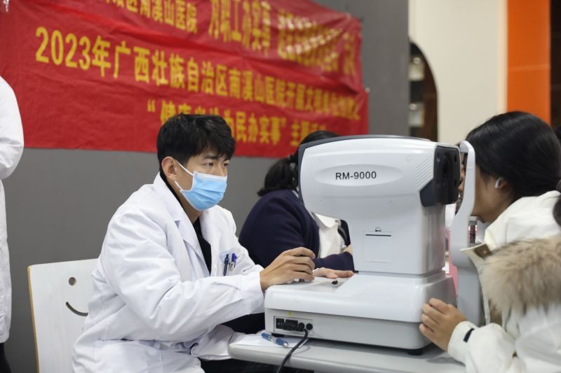 7.南溪山医院眼科医护人员为在场学生检查眼健康问题