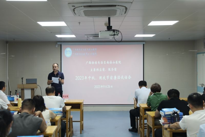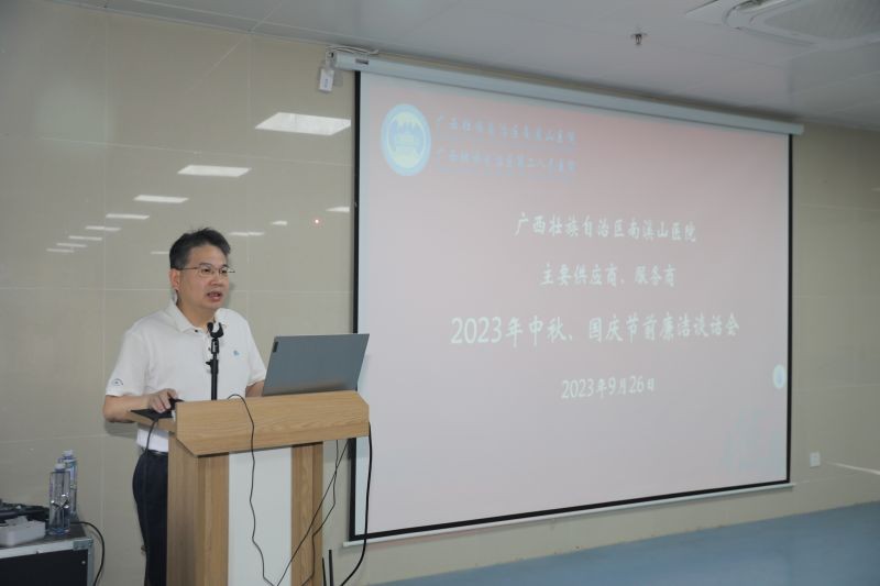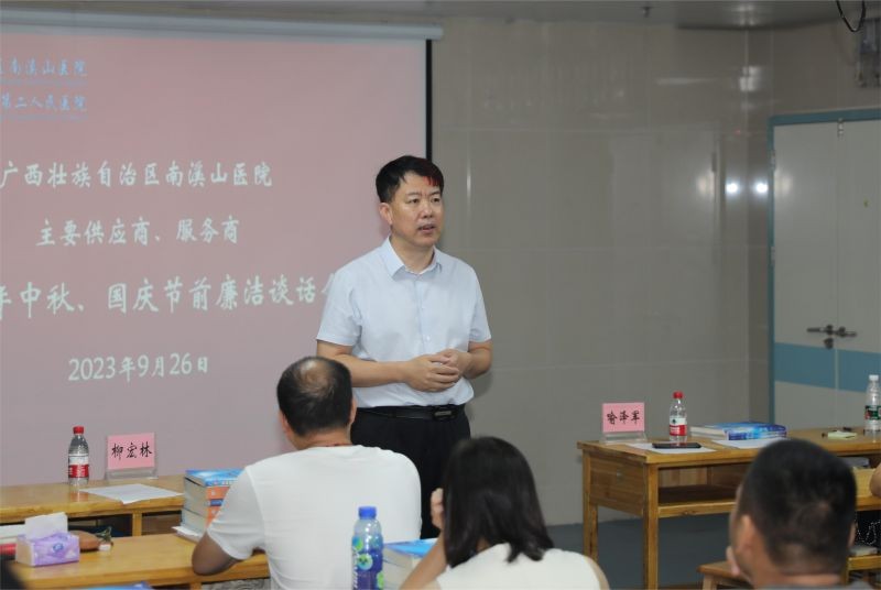 为深入推动医院党风廉政建设走深走实,进一步规范医药购销领域的从业行为,强化医院对医药耗材购销的监督管理,持续推进清廉医院建设,9月26日,广西壮族自治区南溪山医院在中秋、国庆双节前夕,召开主要供应商、服务商集体廉洁谈话会。该院党委书记柳宏林、纪委书记喻泽军出席会议,医院供应商、服务商代表参加会议。