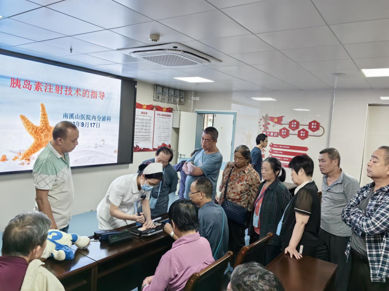 活动中,各科室针对不同类型的患者举行各类宣教活动。老年病科的护士针对低温烫伤的原理,预防和处理方法,专门录制了科普视频,现场跟大家分享,有20余位老年患者及家属参加并从中收获知识。内分泌科患教课堂上,内分泌科护士分享了胰岛素的保存方式、胰岛素注射装置的类型、胰岛素注射部位的选择、注射的方法及注射部位的轮换等相关理论知识。讲解完毕后,护士还现场演示了胰岛素注射的操作流程。