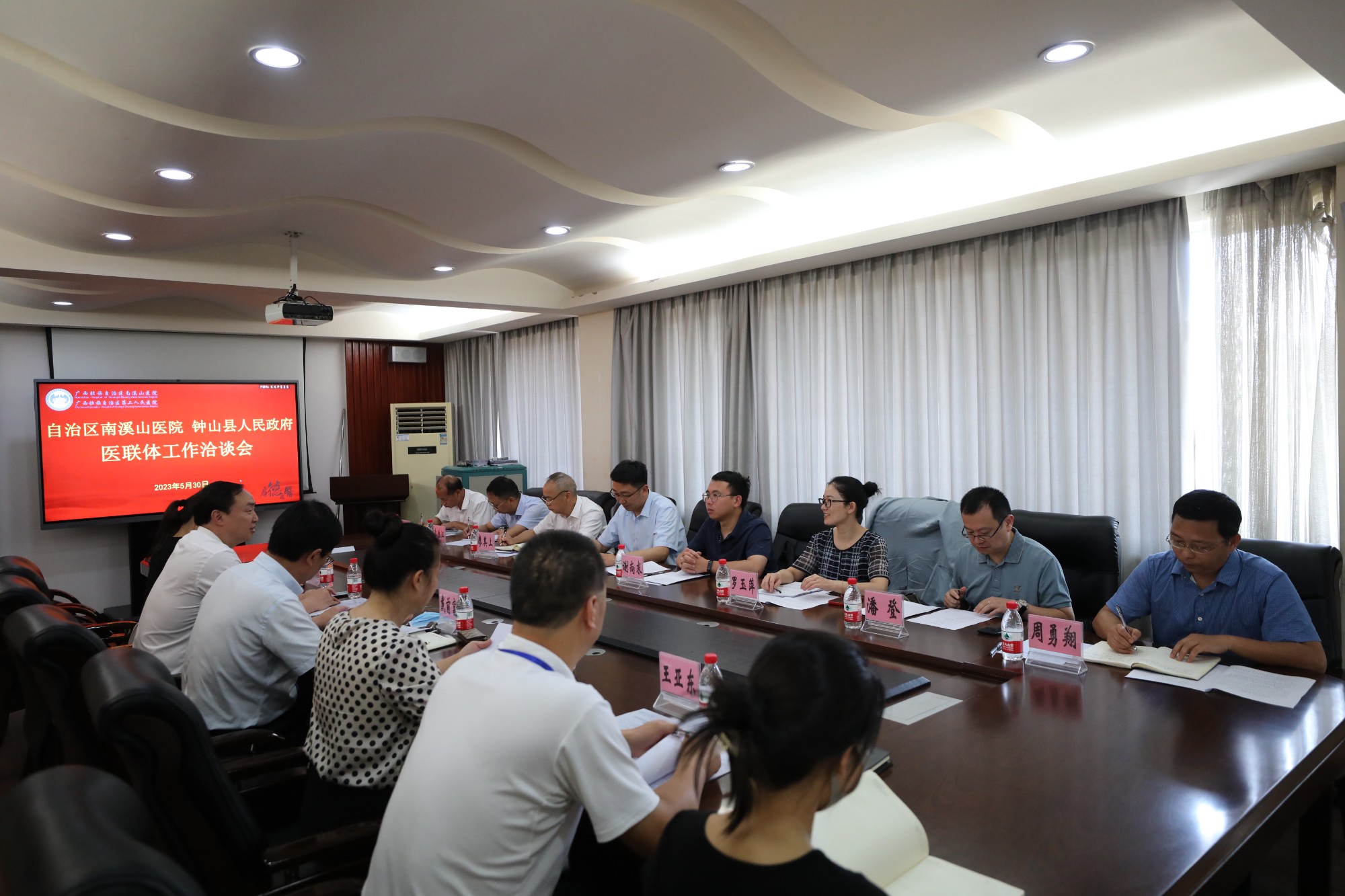 5月30日,钟山县人民政府副县长刘瑜明一行8人到广西壮族自治区南溪山医院进行交流,洽谈医联体建设相关工作,助推双方合作,谋划钟山县卫生事业发展。