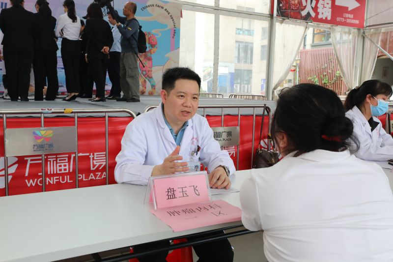 4月19日,由桂林市总工会、广西壮族自治区南溪山医院联合开展的“为职工办实事·送医送健康进基层”第67站暨桂林市政协委员在行动——“送温暖、办实事、助发展”第42场活动走进广西德丰投资开发有限公司(万福广场),为企业职工和商圈顾客提供健康服务。
