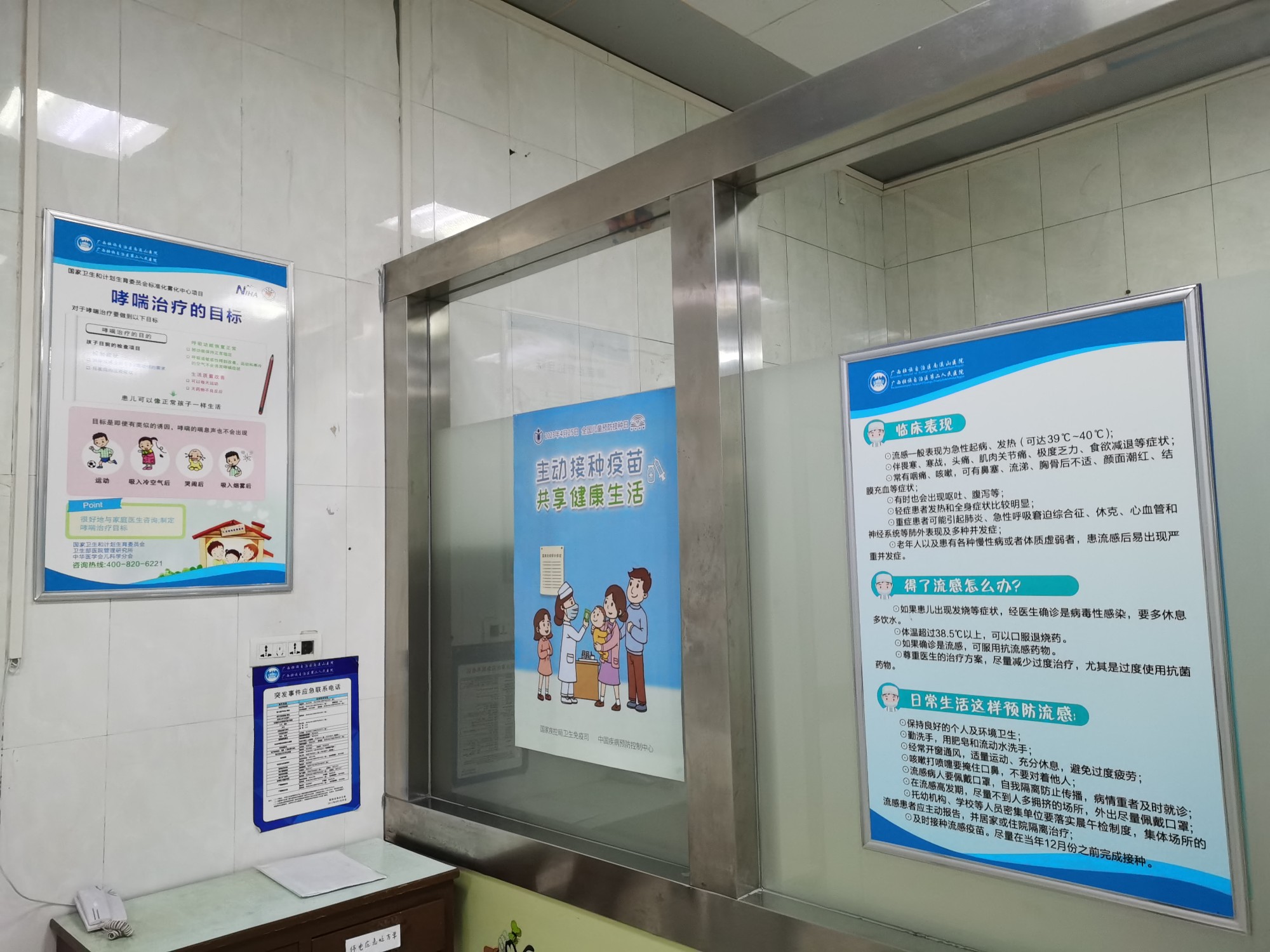 预防保健科张贴的海报及健康教育宣传栏宣传“常见的疫苗 可预防疾病”的内容 医院供图