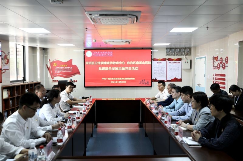 10月31日,广西壮族自治区卫生健康宣传教育中心党支部书记、副主任周婷一行7人到自治区南溪山医院开展党建融合发展主题党日活动。