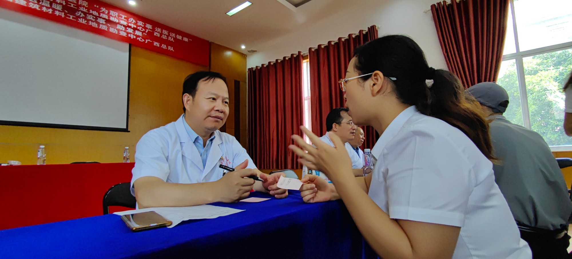 “感谢医院这么多专家上门服务,单位职工平时都在各个工地奔波,去趟医院不容易,今天可以说把身体都好好检查了一遍,收获不小!”中国建筑材料工业地质勘查中心广西总队副总队长付亚春在咨询了多个专科的专家后激动地说道。