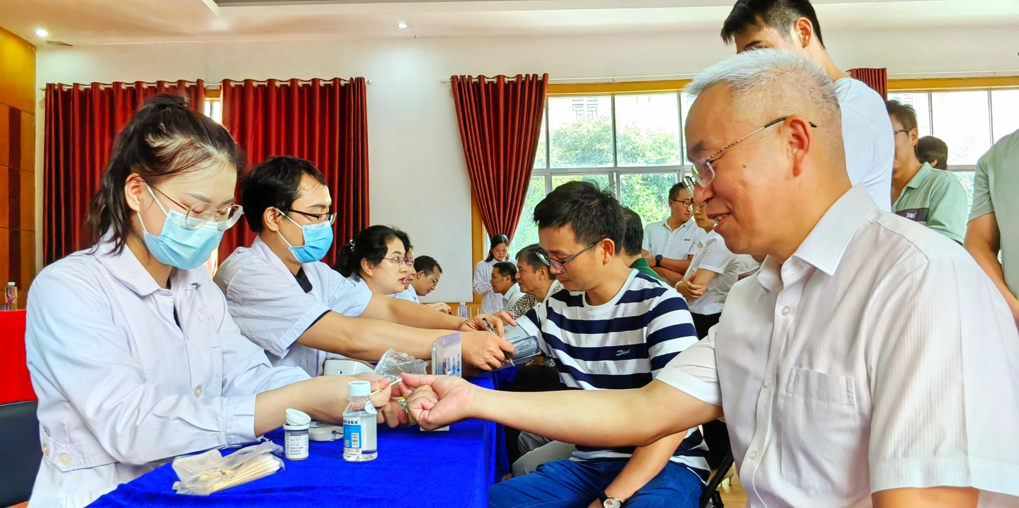 医院健康管理中心护士为职工检测血糖。张超群 摄