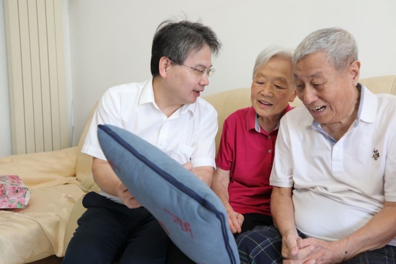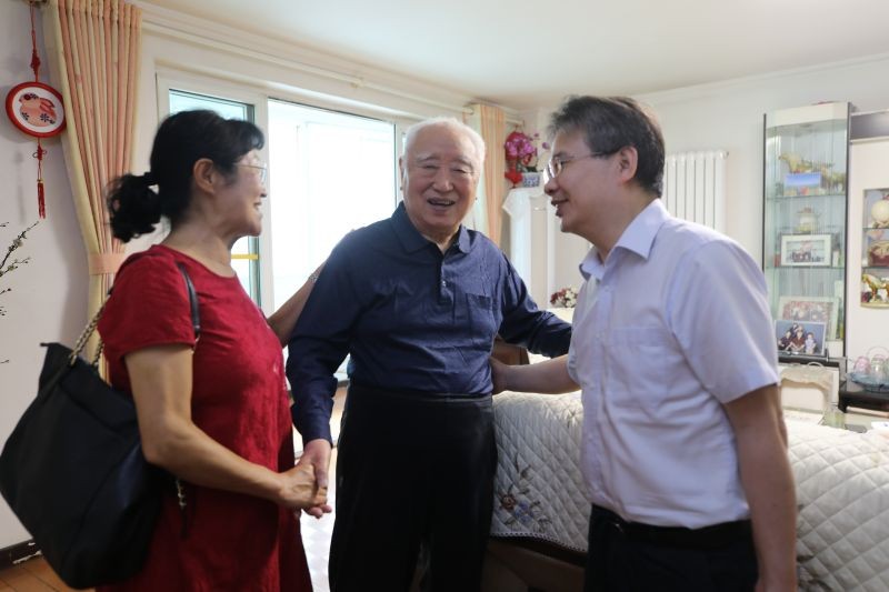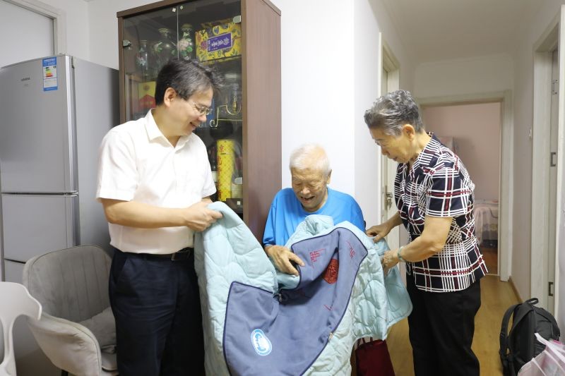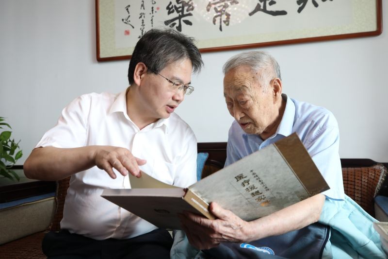 在筹备组的精心安排和陪同下,9月14日至17日,医院慰问组一行上门慰问了部分行动不便的老职工。在原北京协和医院大外科主任、中日友好医院副院长、南溪山医院首任大外科主任潘瑞芹教授家中,潘老饶有兴致地与慰问组分享了他在南溪山医院的工作时光和动人故事,并强调高水平的医术和高尚的医德才是医院发展的根本。抗美援朝英雄、原南溪山医院教导员许万强回忆起那段峥嵘岁月和战友情谊,激动地祝福道:“五十五年弹指间,如歌岁月换新颜,全民走进新时代,锦绣南医更灿烂!”