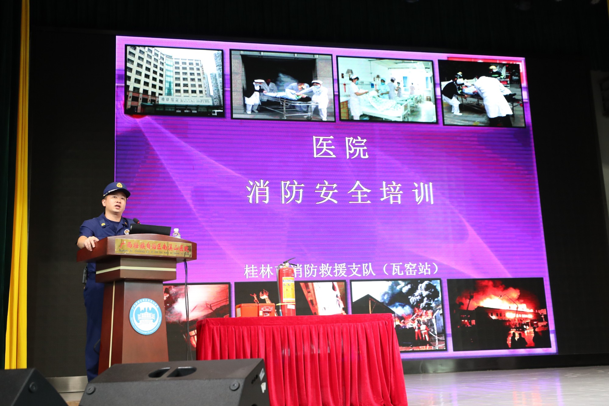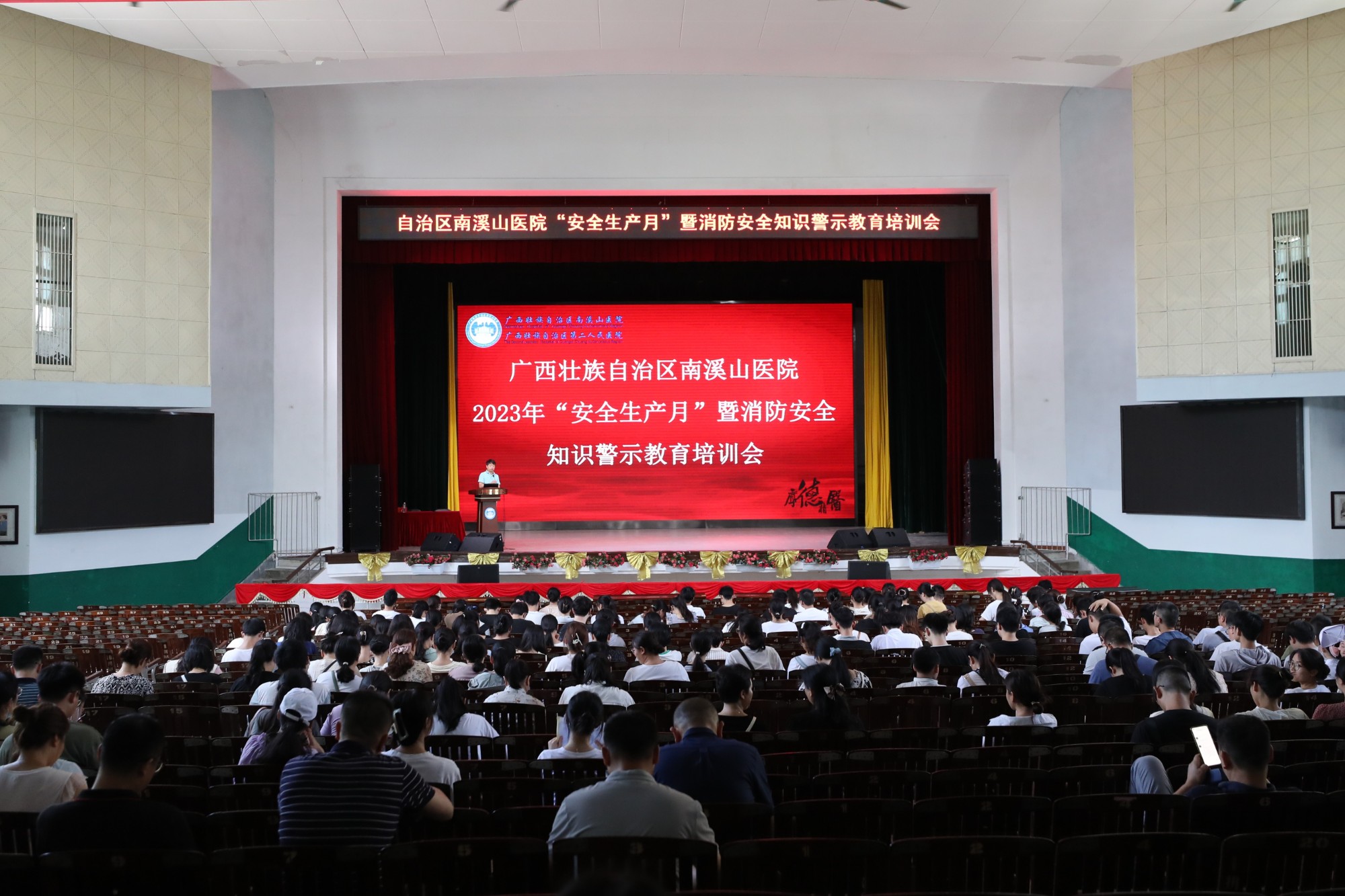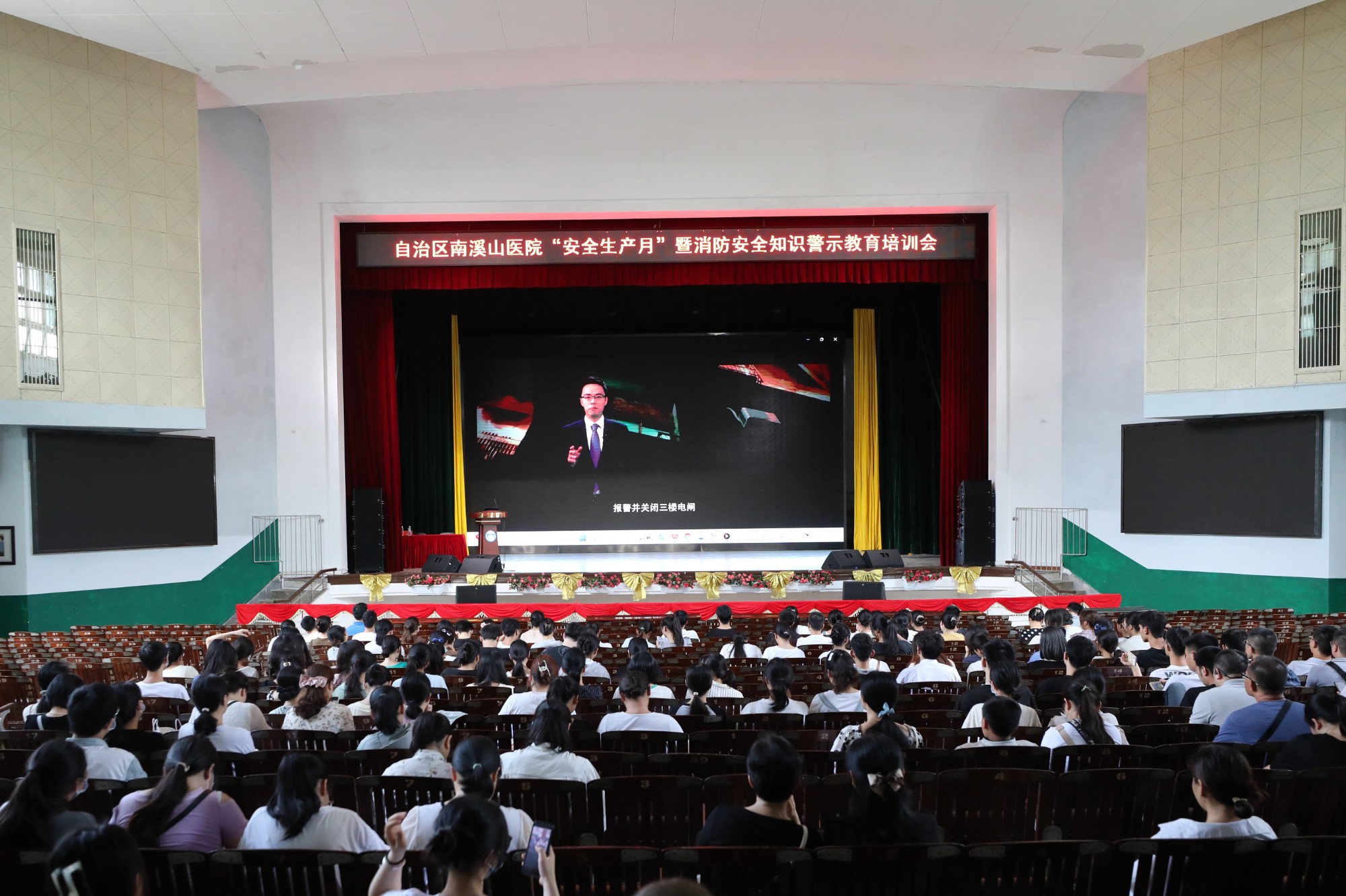 为进一步提高医院消防安全管理水平,强化全体医护人员消防安全意识及对火灾紧急情况应急处置能力,7月4日,自治区南溪山医院安全生产办公室、保卫科及应急办公室联合开展2023年“安全生产月”暨消防安全知识培训会。300多名医护人员和各科室的应急专员参加此次培训及演练。